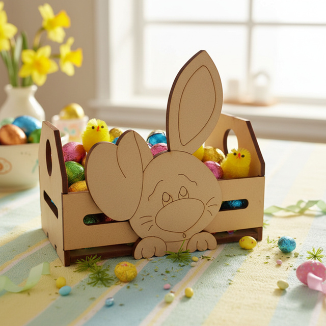 kit 5unid Cesta Cestinha Caixote Bandeja Coelho PascoaMdf