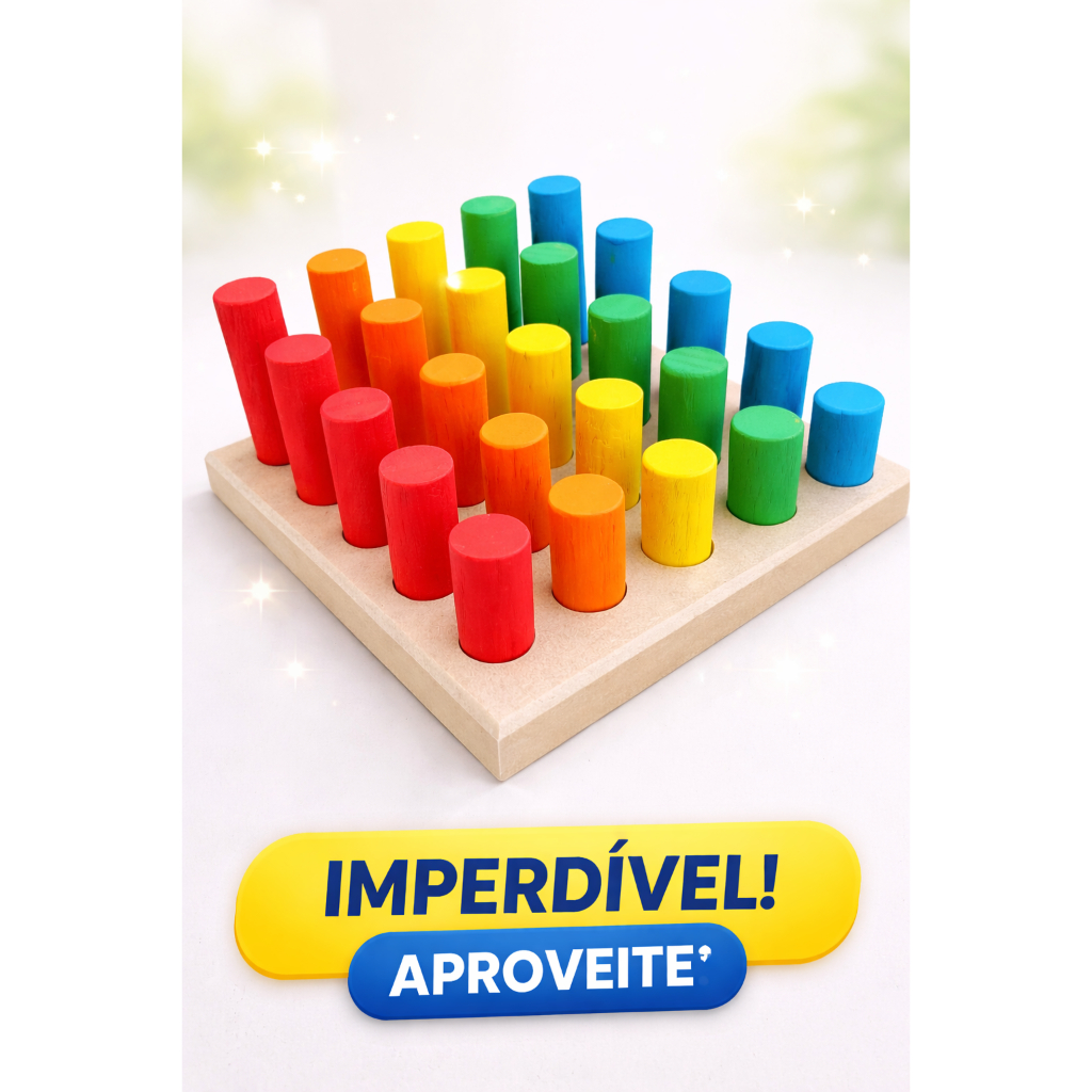 KIT 5X BRINQUEDO EDUCATIVO MONTESSORI PINOS + FORMAS GEOMETRICAS + TORRE HANÓI MONTE SEU KIT AGORA