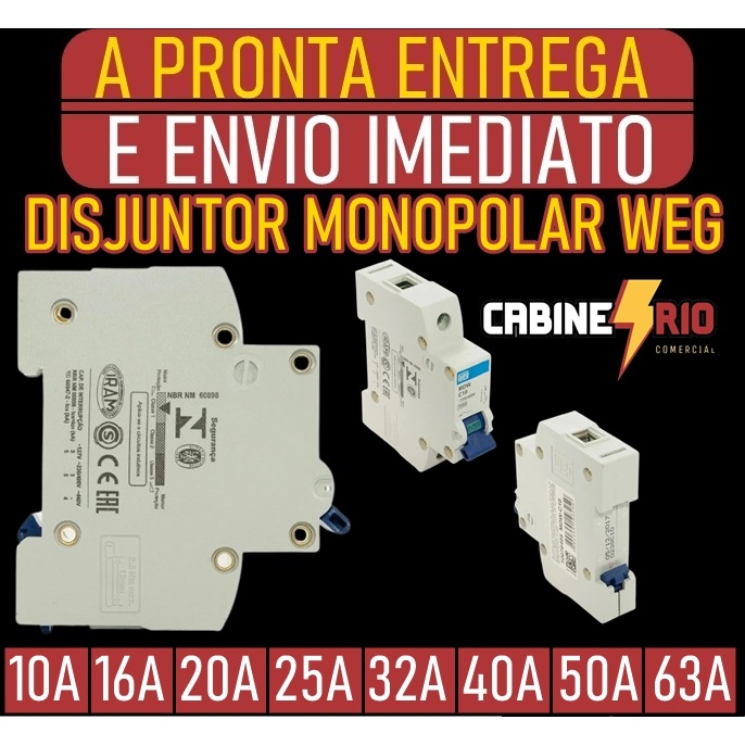 Kit 5x Disjuntores Monopolares WEG 10A até 63A -Os disjuntores são dispositivos que fazem o seccionamento e proteção de equipamentos contra curtos-circuitos e sobrecargas de longa duração. A linha de minidisjuntores MDW foi desenvolvida para aplicações em circuitos de baixa tensão, estes dispositivos possuem o mecanismo de disparo livre, onde o disparo independe da posição da manopla e indicação do estado do disjuntor. Características Técnicas: Tensão emprego; 440Vca/250Vcc Frequência; 50/60 Hz -O minidisjuntor de curva C tem como principal característica o disparo instantâneo para correntes entre 5 a 10 vezes a corrente nominal. Por isso, são aplicados na proteção de circuitos com instalação de cargas indutivas.