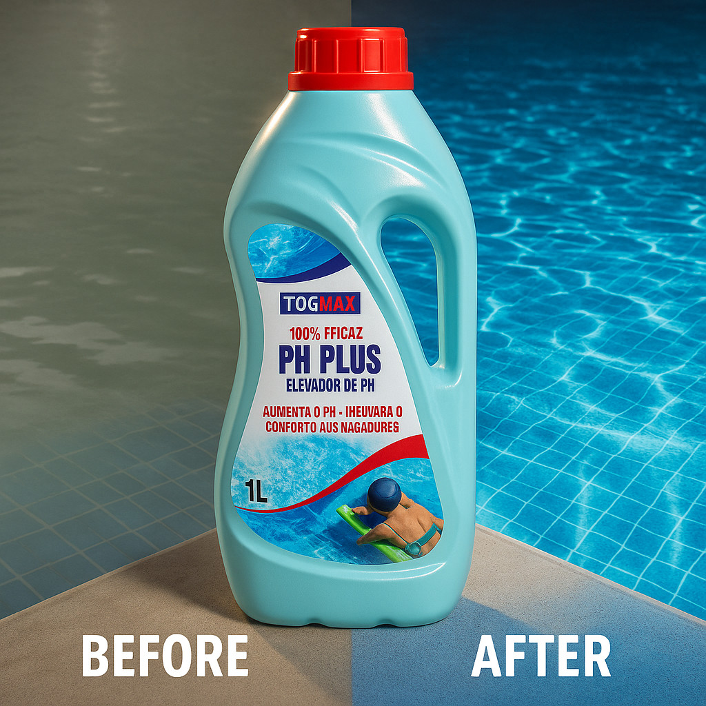 ENVIO IMEDIATO + NOTA FISCAL GARANTIDA Kit 5x PH Plus Togmax 1L – Correção rápida do pH e equilíbrio prolongado da piscina O Kit PH Plus Togmax 5x1L é a escolha perfeita para quem deseja praticidade e economia no tratamento de piscinas. Com fórmula líquida e pronta para uso, o PH Plus atua como elevador de pH, corrigindo rapidamente águas ácidas (pH baixo). Com este kit, você terá 5 litros de produto, ideal para quem mantém piscinas de uso frequente (residenciais ou comerciais). Ele melhora a eficiência do cloro, evita a corrosão de equipamentos e proporciona mais conforto para pele e olhos dos banhistas. PERGUNTAS FREQUENTES COMPARATIVAS Togmax é melhor que Genco? Sim. O PH Plus Togmax entrega eficiência técnica com preço mais competitivo, garantindo excelente custo-benefício. Por que escolher o kit com 5 unidades? Porque garante 5 litros de produto, maior rendimento e preço por litro mais baixo. É equivalente ao PH Mais da Hidroazul? Sim. Ambos corrigem o pH baixo, mas o Togmax oferece rendimento superior e fácil aplicação. Funciona em piscinas grandes? Sim. Basta ajustar a dosagem conforme o volume de água. É pronto para uso? Sim. O produto é líquido e não precisa de diluição complexa. Posso usar em qualquer piscina? Sim. Seguro para piscinas de vinil, fibra ou azulejo. Ajuda a economizar cloro? Sim. Com pH correto, o cloro age melhor e o consumo diminui. Posso usar junto com outros químicos? Sim. Compatível com cloro, algicidas e clarificantes. Qual o pH ideal da piscina? Entre 7,2 e 7,6 – faixa que garante conforto e máxima ação do cloro. O kit é econômico? Sim. O volume de 5 litros garante várias aplicações, ideal para uso contínuo. CARACTERÍSTICAS E BENEFÍCIOS Correção imediata – Eleva o pH rapidamente. 5 Litros no total – Tratamento prolongado e econômico. Água cristalina – Mantém a piscina equilibrada. Protege equipamentos – Evita corrosão e danos. Conforto para banhistas – Protege pele e olhos. Pronto para uso – Fórmula líquida, fácil aplicação. Economia no cloro – Potencializa sua ação. Rendimento superior – Ideal para grandes volumes de água. Produto técnico – Padrão de qualidade Togmax. Segurança garantida – Nota fiscal e procedência assegurada. RECOMENDAÇÕES DE USO – CUIDADO Use luvas ao manusear. Produto químico – não ingerir. Armazene em local fresco, seco e fora do alcance de crianças. Não misture produtos químicos no mesmo recipiente. Dissolva em água antes de aplicar. COMO USAR Meça o pH da piscina com kit de teste. Se estiver abaixo de 7,2, dilua a quantidade indicada em um balde com água da piscina. Aplique uniformemente na superfície da água. Deixe a recirculação ligada por 2 horas. Refaça o teste até o pH estar entre 7,2 e 7,6. O QUE VOCÊ VAI RECEBER 5 frascos de PH Plus Togmax 1L (total de 5 litros) Nota fiscal e garantia de procedência GARANTIA DE QUALIDADE TOGMAX A Togmax, parte do Grupo Vatten, é referência em produtos químicos para piscinas, limpeza e aromatização. Com pureza garantida, rendimento superior e eficiência técnica, você mantém sua piscina cristalina, equilibrada e segura para todos os banhistas. Garantia do vendedor: 3 meses