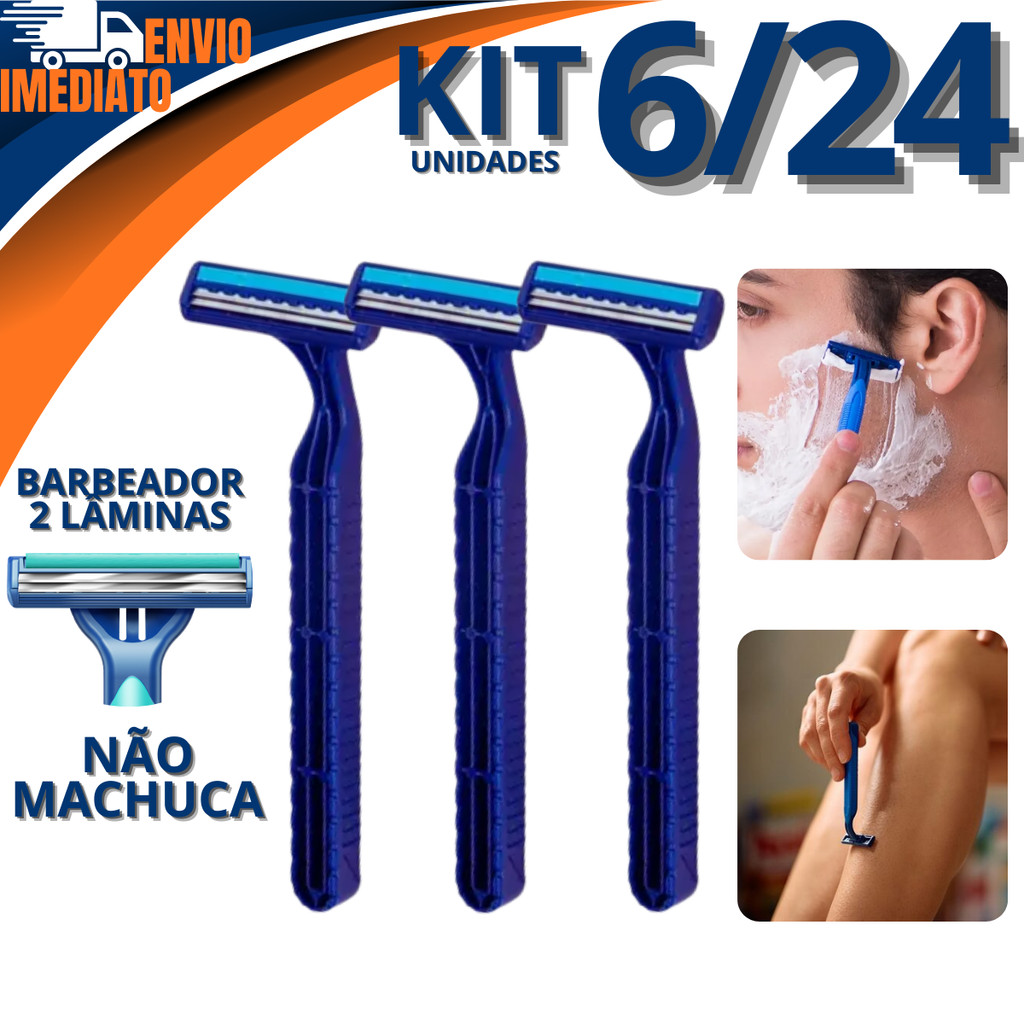 Kit 6/12/18/24 Barbeador Descartavel 2 Lâminas Unissex Barbeadores Não Machuca Pele