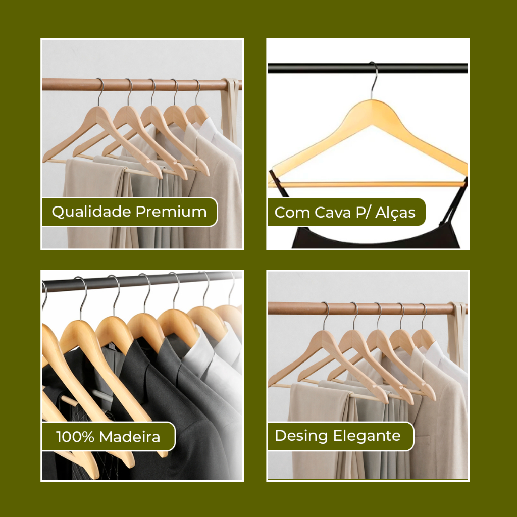 Kit 6/12/21 Cabides De Madeira Premium Marfim Para Roupas Calça Gancho Cromado vale a pena?
