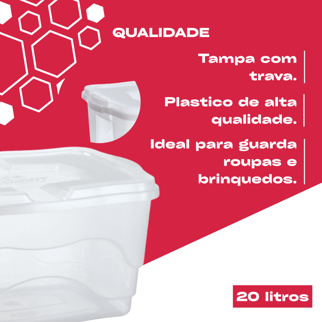 | Kit 6,8,10 e 12 Caixas Organizadoras 20 Litros Com Travas Container... este produto | R$ 125,00 | 50% | 4.8/5 | 66 |