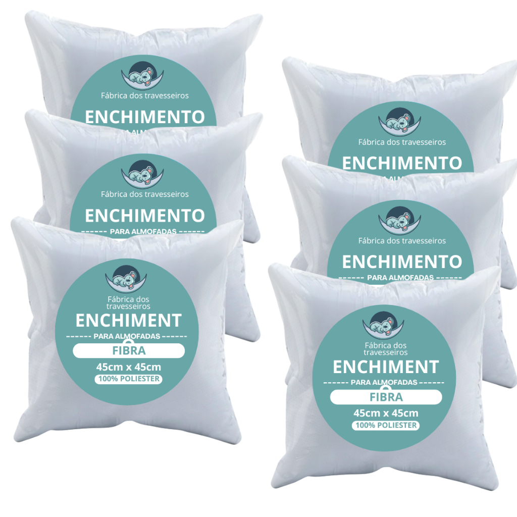 kit 6 Almofada de enchimento refil 45x45cm 100% fibra antialérgico