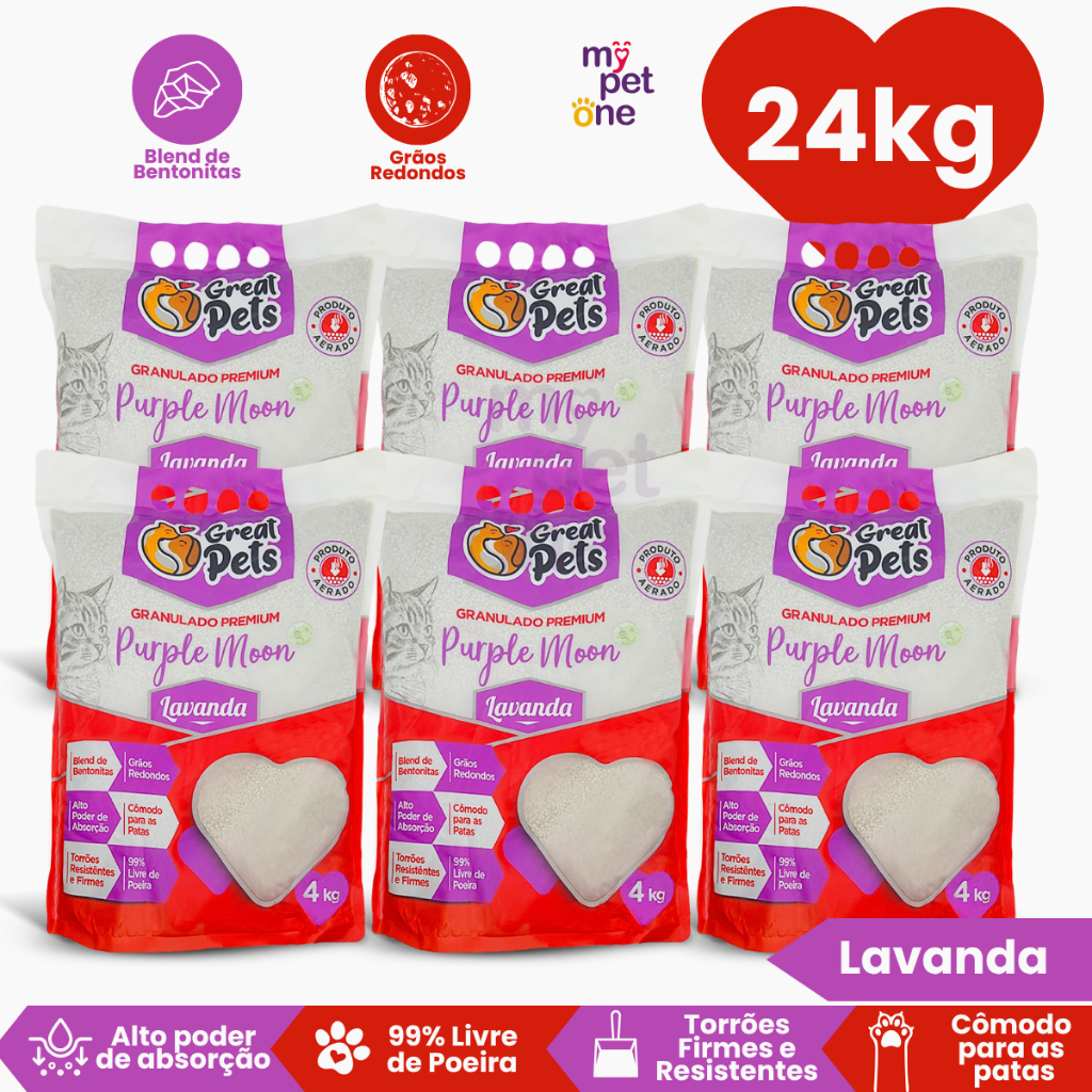 Kit 6 Areia Bentonita Esférica Premium Lavanda Great Pets para Gatos - 24Kg