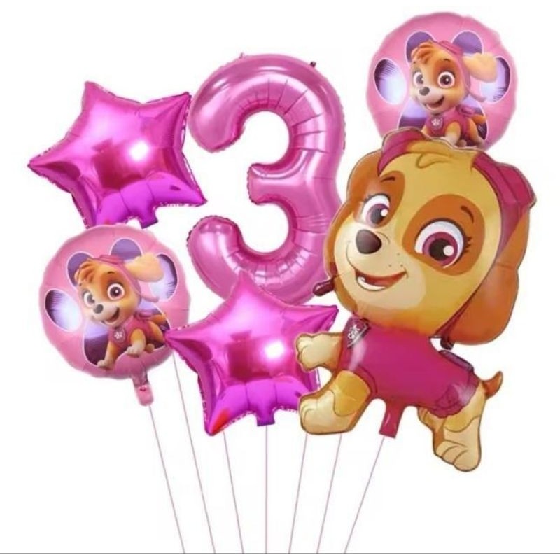 Kit 6 Balão Metalizado Skye Patrulha Canina Corpo Estrela Número 3 Rosa Festa Aniversário
