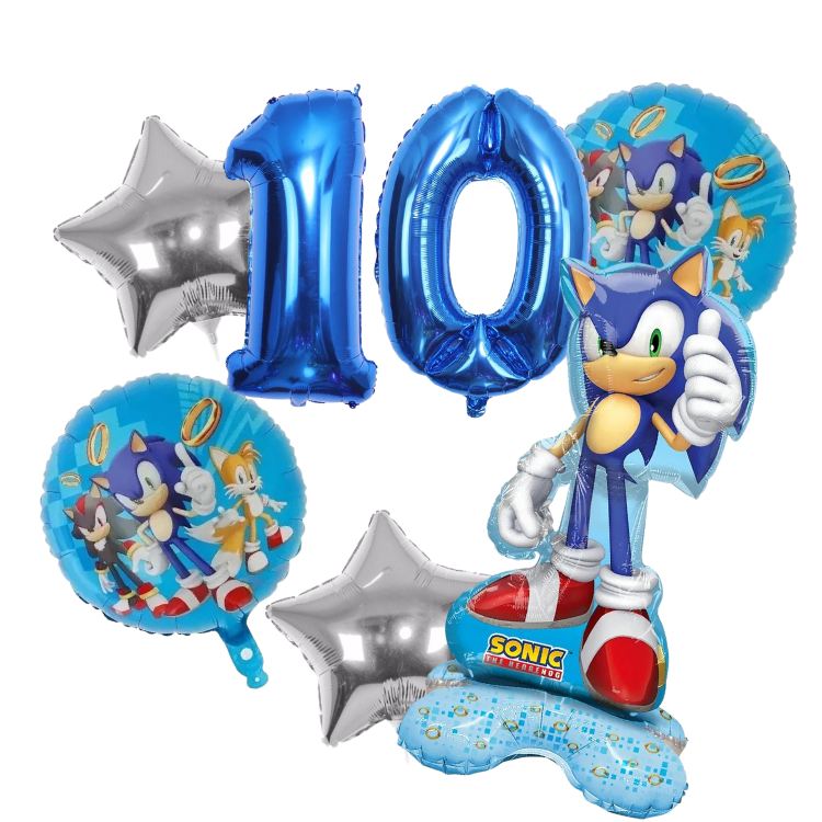 Kit 6 Balão Sonic Centro + Balão Redondo + Estrela + Número