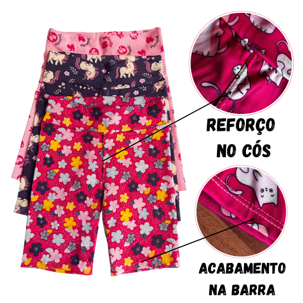Kit 6 Bermudas Ciclista Infantil Feminina Suplex Confortável Menina Verão ENVIO ESTAMPAS SORTIDAS