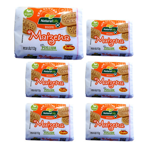 Kit 6 biscoitos Sem Glúten Vegano Maizena Com Psyllium Natural Life 112g