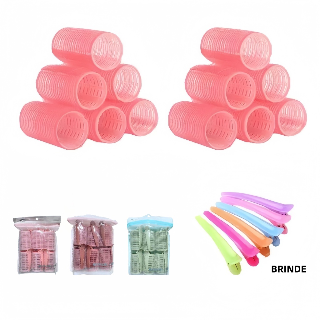 Kit 6 Bobs Grandes Cabelo Velcro Modeladores +6 Prendedores,DIY Styling Tool tamanho unico 6.3x4 CM