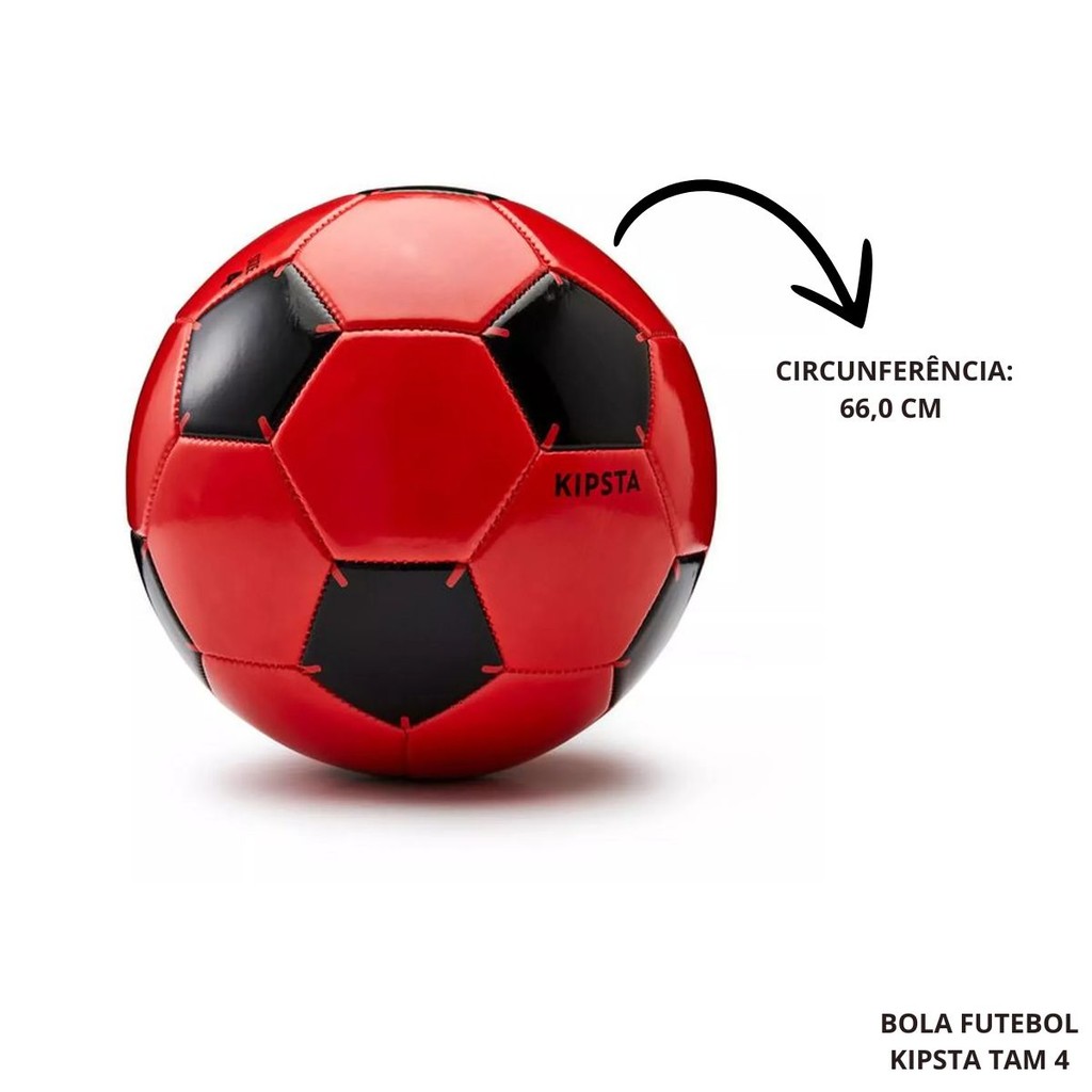 "É essencial lubrificar a agulha antes de inseri-la na válvula, pois agulhas secas podem danificá-la e causar vazamento de ar." kit 6 Bola De Futebol Kipsta First Kick nos tamanhos 3, 4 e 5 Ideal para jovens futebolistas iniciantes ou para prática ocasional, esta bola foi desenvolvida com foco na resistência e na qualidade do ressalto, acompanhando os primeiros passos no futebol. Benefícios do Produto Resistência: Revestimento externo em PVC, proporcionando maior durabilidade. Redução dos Impactos: Dureza adequada, similar à de uma bola clássica de futebol. Enchimento Duradouro: Câmara de ar otimizada, garantindo boa retenção de ar. Qualidade de Ressalto: Desenvolvida para atender aos padrões internacionais de futebol no quesito ressalto. Informações Técnicas Composição: Revestimento: 100% Cloreto de Polivinila (PVC). Câmara: 100% Borracha de Nitrilo Butadieno (NBR). Forro: 100% Poliéster. História do Produto:Criada para atender às necessidades dos jovens futebolistas, com tamanhos adaptados para diferentes idades. Tamanho e Peso: Tamanho 4: Indicado para crianças de 9 a 12 anos. Peso: Entre 350 e 390 gramas. Circunferência: Entre 63,5 e 66,0 cm. Pressão Recomendada: 0,6 bar. Manutenção e Armazenamento Armazenamento: Guardar em local seco e arejado após o uso. Cuidados ao Inflar: Umidificar a agulha antes de inflar para evitar danos no bico. Testes de Qualidade: A bola foi submetida a rigorosos testes de laboratório e prática para assegurar a durabilidade e a performance, atendendo aos requisitos das federações internacionais. Imagens meramente ilustrativas*****