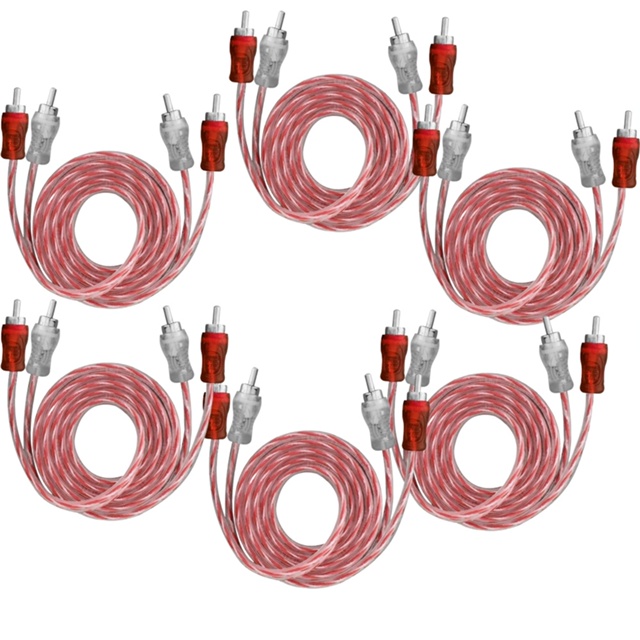 Kit 6 Cabo RCA de 1 Metro Flexível Injetado Transparente Vermelho Com Prata 4mm Tech One Svart