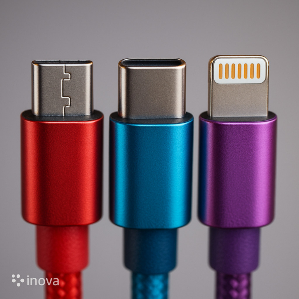 Kit com 6 Cabos USB – 1 metro Compatível com aparelhos Android (V8), Tipo C e iPhone (Lightning) 🔧 Detalhes do Produto: ✅ Comprimento: 1 metro 🔌 Entradas: Micro USB (V8), Tipo C e Lightning (iPhone) 💪 Material: Cabo com revestimento em nylon trançado super resistente 🎨 Cores sortidas: Dourado, Azul, Vermelho, Cinza ⚙️ Alta durabilidade e flexibilidade para o dia a dia 🔋 Carregamento rápido e transferência de dados (até 2.4A) 📦 Enviamos em até 24h! 📲 Ideal para: Celulares Android e iPhone Carregadores de parede, USB de carro, powerbanks Uso residencial, no trabalho ou em viagens 🚚 Benefícios: Envio imediato Produto pronto para pronta-entrega Marca Inova – confiabilidade e qualidade