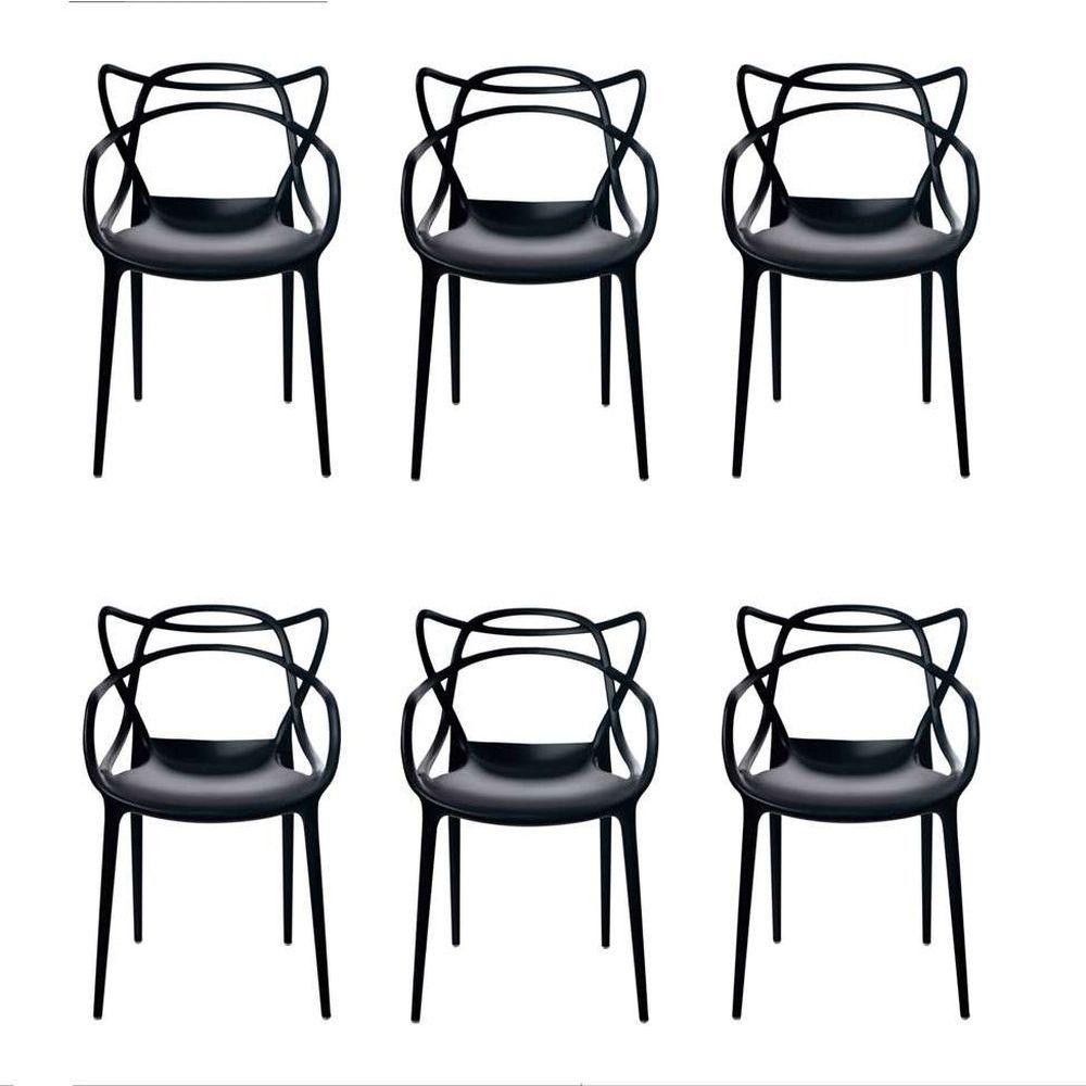 Kit 6 Cadeiras Allegra Preta Sala Cozinha Jantar Modelo: Cadeira Allegra Masters Conhecida no mundo inteiro pelo seu design único e a forma como foi criada a cadeira Allegra Masters é uma homenagem a três cadeiras símbolo da história do design a cadeira Jacobsen de Arne Jacobsen a cadeira Saarinen de Eero Saarinen e a DSR do casal Eames. Os modelos se entrelaçam em uma combinação de curvas dando vida a uma original e cativante fusão de estilos. Material da Estrutura: Polipropileno Garantia de 3 meses por defeito de fabricação. Altura Total: 84 cm Altura do Chão Até o Assento: 48 cm Profundidade Interna do Assento: 48 cm Largura Interna do Assento: 53 cm Peso Máx. Recomendado: 120 kgs Peso unitário: 4,2 kgs Não Giratória Não Dobrável Não Empilhável Indicações de Uso: - Não utilizar produtos químicos e abrasivos para limpeza; - Limpar com pano umedecido e sabão neutro para melhor conservação; - Deve ser evitada exposição dos produtos ao sol pois podem apresentar pequenas mudanças em sua coloração. Observações importantes: - Produto NÃO necessita de montagem - Pode haver alguma diferença de tonalidade entre a imagem e o produto real, por conta do tratamento de imagens e a calibração de cores do seu monitor. - Ao receber a mercadoria, o cliente deve verificar as condições da embalagem, caso haja alguma avaria não assine o comprovante de recebimento.