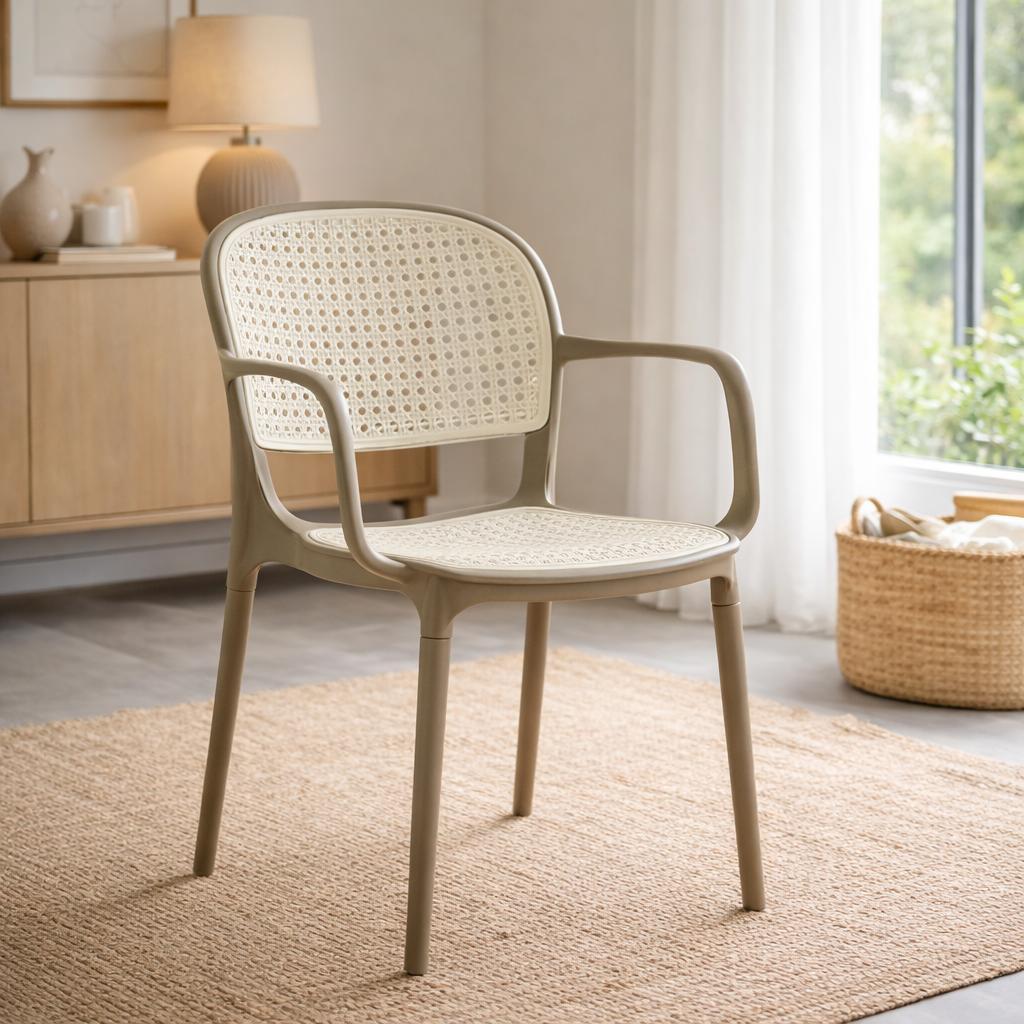 Cadeira Roma Prática com Braços para Sala e Cozinha A Cadeira Roma Prática une estética sofisticada, praticidade e resistência em um design moderno inspirado no visual do rattan, totalmente produzida em polipropileno. Seu acabamento traz o charme inspirado na trama vazada com a vantagem de um material durável, leve e fácil de manter. Projetada para o uso diário, a Roma Prática oferece conforto ergonômico, braços integrados e uma estrutura firme, sendo ideal para salas de jantar, cozinhas, áreas gourmet, varandas cobertas e ambientes comerciais. Os pés são desmontáveis, facilitando o transporte, o armazenamento e a logística, além de contar com instalação simples e rápida, sem complicações. Feita completamente em polipropileno de alta qualidade, a Cadeira Roma Prática é um produto durável e de fácil limpeza. Sua estrutura robusta garante um produto de alta qualidade e um ótimo custo benefício. OBS: Produto acompanha somente 6 Cadeiras Especificações: > Material: 100% Polipropileno > Resistência: Aconselhável até 120.00kg > Peso: Aproximadamente 6.00kg Medidas: > Altura Total(cm): 83,00 > Altura do Assento(cm): 46,00 > Altura até o Braço(cm): 67,00 > Altura do Encosto(cm): 31,00 > Largura do Assento(cm): 41,00 > Largura do Encosto(cm): 45,00 > Largura Total(cm): 53,50 > Profundidade do Assento(cm): 41,00 > Profundidade Total(cm): 41,00 Importante: Produto enviado desmontado acondicionado em caixa de papelão reforçada, acompanha manual de montagem (não nos responsabilizamos pela montagem do produto). > Observações de Entrega: Os entregadores não são autorizados: > Entrar no domicílio, sem estar acompanhado pelo cliente; > Entrar ou subir desacompanhado em prédio residencial ou comercial, o cliente precisa receber o pedido na portaria; > Entregar por meios alternativos (exemplo: içar produto por janela, subir escadas); > Entregar em edifícios, entrega será realizada apenas na portaria; > Realizar montagens, instalação ou manutenção de produtos; > Abrir a embalagem do produto; > Realizar entrega em endereço diferente do que consta na Nota Fiscal; > Garantia: 03 Meses Contra Defeitos de Fabricação. > Marca: Magazine Decor