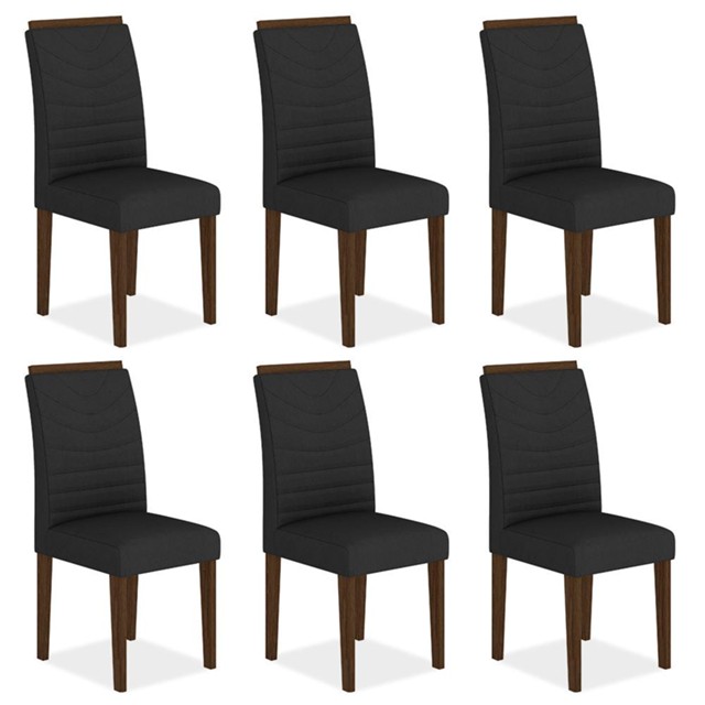 Kit 6 Cadeiras Estofadas Lima Imbuia/preto - Móveis Arapongas