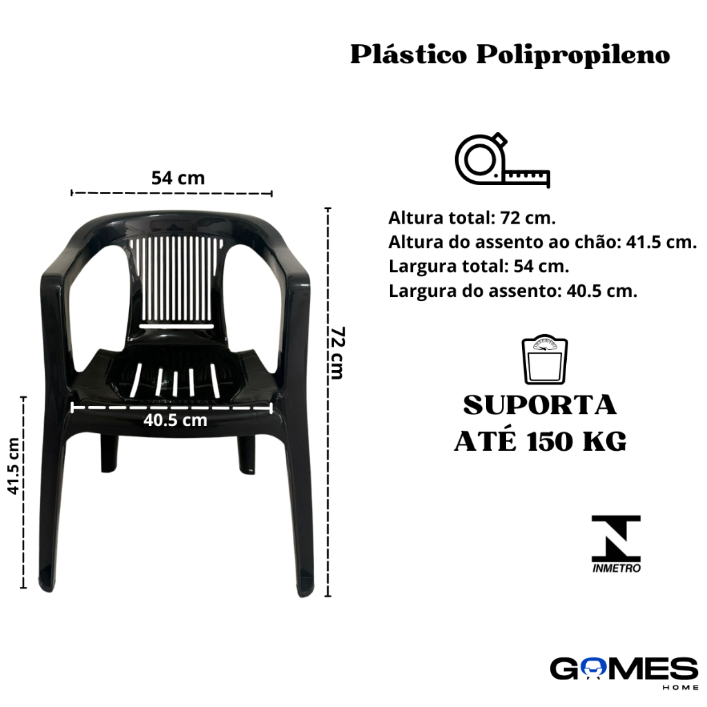 A Poltrona Duramax une praticidade, estilo e durabilidade em um único produto. Fabricada em polipropileno de alta resistência, ela é ideal para quem precisa de uma poltrona confortável, leve e versátil, perfeita tanto para uso interno quanto externo. Seu design com curvas modernas, encosto vazado que facilita a ventilação e braços amplos proporciona uma experiência de conforto superior. Além disso, sua estrutura permite empilhar várias unidades, facilitando o armazenamento e otimizando espaço ideal para quem utiliza grande quantidade de cadeiras, como comércios, igrejas, eventos e áreas de lazer. Diferenciais da Poltrona Duramax Empilhável – economiza espaço e facilita o transporte e armazenamento. Design moderno e elegante – combina com qualquer ambiente. Material resistente – produzida em polipropileno robusto, ideal para uso diário. Conforto garantido – assento amplo, encosto ventilado e braços firmes. Ótima para áreas internas e externas – não enferruja, não mofa e é super leve. Fácil de limpar – basta um pano úmido. Medidas da Poltrona Duramax Altura total: 72 cm Altura do assento ao chão: 41,5 cm Altura do encosto: 36 cm Largura total: 54 cm Largura do assento: 40,5 cm Largura do encosto: 35 cm