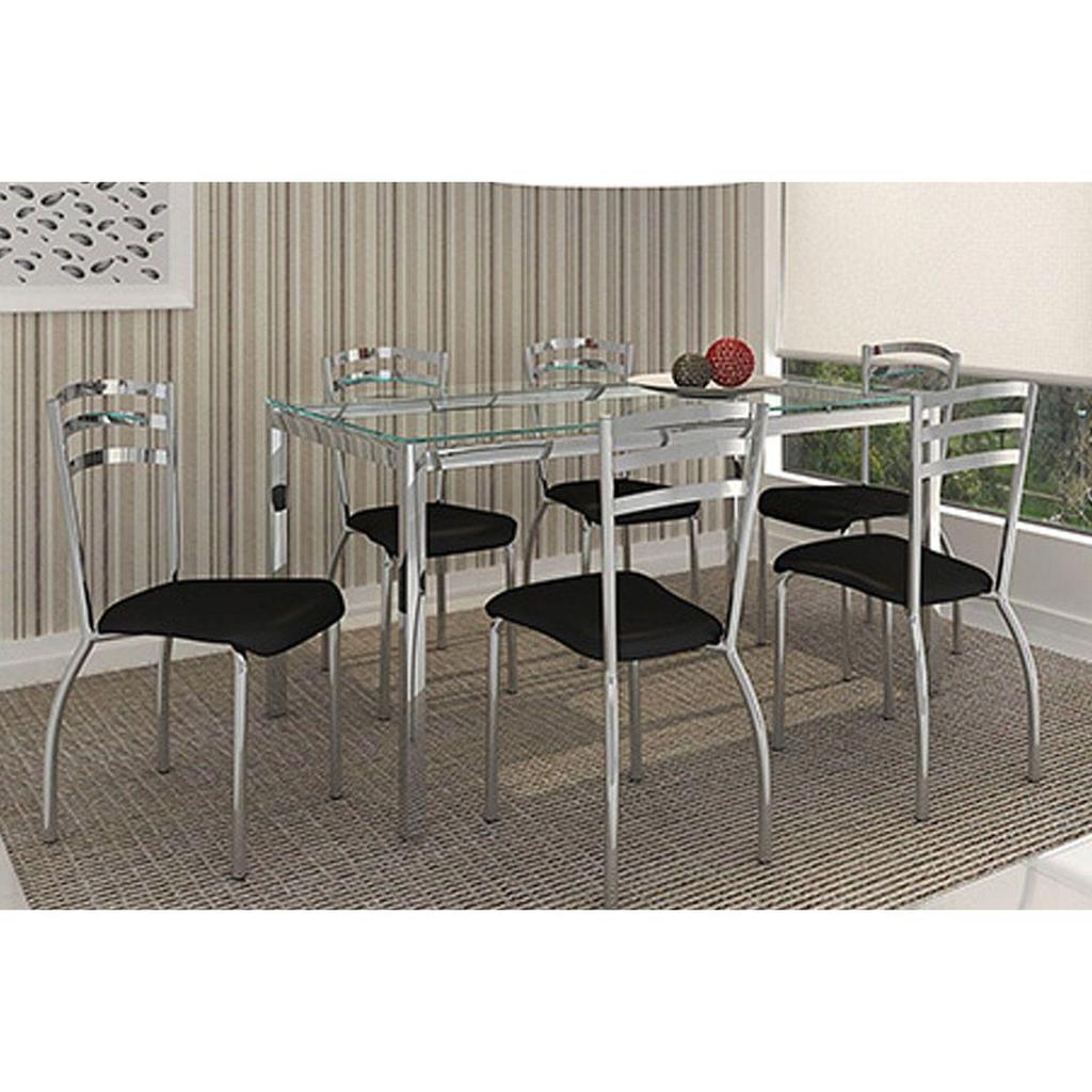 Kit 6 Cadeiras Sala Jantar Portugal C007 6 Un Cromada/Preto 110 - Kappesberg