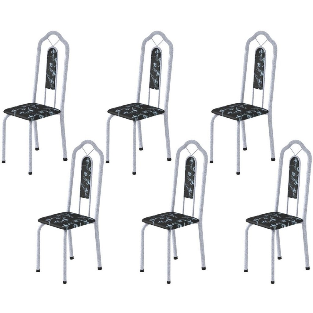 Kit 6 Cadeiras Tubular Bianca Martelado Pérola/Preto Floral