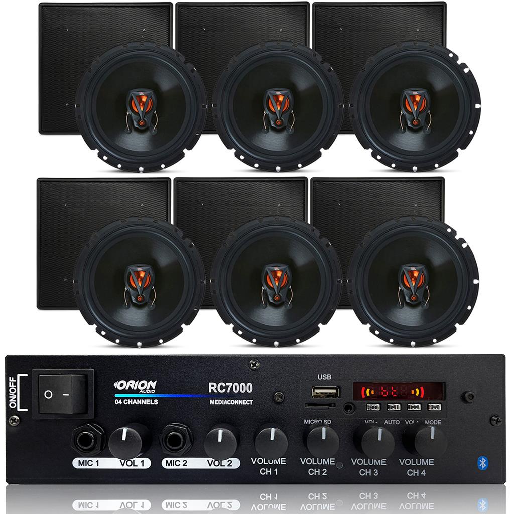 Mais de 15 anos de experiencia no mercado com os melhores produtos e o melhor atendimento! Kit 6 Caixas De Som JBL Arandela Embutir Quadrada Preta 6P 50W Rms Triaxial 4 Ohms + Amplificador Bluetooth Usb Aux P2 Rca Fm 4 Canais 500W 125w Rms Orion Apresentamos o incrivel Alto-Falante JBL 6 Polegadas 50W RMS 4 Ohms Triaxial da linha Flex3 e modelo 6TRFX50, da renomada marca JBL Harman Selenium. Este alto-falante e a escolha perfeita para quem busca um som de alta qualidade, potencia e nitidez para o seu som ambiente. Ideal para instalar no teto de Gesso, Pvc, Drywall, Sanca, Madeira, Salas, Escritorios, Quartos, Recepcao, etc. Com uma potencia de 50W RMS e impedancia de 4 Ohms, o Alto-Falante JBL 6 Polegadas Triaxial produz um som poderoso e envolvente, com uma excelente qualidade sonora em todas as frequencias. O modelo Triaxial ainda conta com um tweeter integrado, garantindo um som mais claro e agradavel em todas as faixas das suas musicas, garantindo uma experiencia de audio ainda mais imersiva. Alem disso, o design moderno e elegante do Alto-Falante JBL 6 Polegadas 50W RMS 4 Ohms Triaxial se adapta perfeitamente ao interior do seu ambiente, proporcionando um visual incrivel e sofisticado. Nao perca mais tempo e adquira agora mesmo o seu Alto-Falante JBL, voce tera um som de alta qualidade e uma experiencia de audio incomparavel em seu projeto. Escolha JBL e tenha a certeza de estar adquirindo um produto de qualidade superior e confiabilidade comprovada. Ficha tecnica do alto-falante JBL 6 Polegadas: Potencia: 50W RMS Potencia de pico: 100W Impedancia: 4 Ohms Tamanho: 6 polegadas Modelo: 6TRFX50 Linha: Flex3 Tweeter integrado Sensibilidade: 88 Resposta de frequencia: @ -10dB 60 Hz a 20 kHz Peso do conjunto magnetico: 293g Design moderno e elegante Marca: JBL Arandela de Embutir Quadrada Preta Fabricada em Plastico ABS Modelo Quadrado com Tela Perfurada Disponivel na cor preta Otimo Acabamento Instalacao Discreta em Gessos e Forros Perfeita para Embutir Acompanha Alto Falantes JBL 6TRFX50 Medidas da arandela: 21x21x7 Centimetros Recomenda-se utilizar um fio de cobre com bitola minima de 1,5mm2 (ou 16 AWG) para distancias curtas, e aumentar a bitola proporcionalmente com o aumento da distancia, para minimizar a perda de potencia. E importante evitar o uso de fios de baixa qualidade ou de secao muito fina, pois podem causar queda de desempenho e aquecimento excessivo. Amplificador para som ambiente Bluetooth USB/FM/Micro SD/ 2 Entradas de Microfone - 125Wx4 Canais 4 Ohms compacto para uso geral, desenvolvido pela Orion, com alto desempenho e qualidade de reproducao para todas as faixas de frequencia de audio. Possui Controles de volume independente, entrada auxiliar e entrada para 2 microfones. Ideal para completar qualquer projeto de som, seja em igrejas, escolas, hoteis, supermercados, bares, lojas, consultorios, etc. Voce pode ouvir suas musicas com muito mais qualidade. Esse amplificador tem 500 Watts de potencia maxima PMPO e conta com tensao bivolt para voce instalar com facilidade e garantir a execucao do som com mais qualidade. Ele conta com conexao USB, SD, RCA, FM e Bluetooth, alem de 2 entradas para microfone ou instrumentos musicais. Acompanha Controle remoto para trazer a comodidade de controlar seu som a distancia. Possui 4 saidas que suportam ate 16 alto falantes(consultar manual de instalacao para realizar a ligacao correta) Medidas: Largura : 25 Cm Profundidade : 12 Cm Altura : 7 Cm Receiver Mp3 Bluetooth Rc7000BT 500 Watts Saida Borne - Potencia: 125W Rms Potencia maxima PMPO: 500 W - Impedancia Minima: 4 Ohms -Duas Entradas P10 para microfones -Controle de Ganho individual dos Canais - 4 Canais de Saida de audio Borne -Entrada Para Cartao SD ,MMC ,USB - Receptor Bluetooth -1 Entrada RCA Conteudo da embalagem: -06 Caixa de Embutir Arandela com Alto-falante de 6 polegadas JBL + suportes de fixacao -01 Controle Remoto -01 Fonte Bivolt -01 Manual * IMPORTANTE: Nao ligar com a impedancia menor que 4 Ohms, ira danificar o aparelho. Recomendamos que a instalacao seja feita por um profissional*