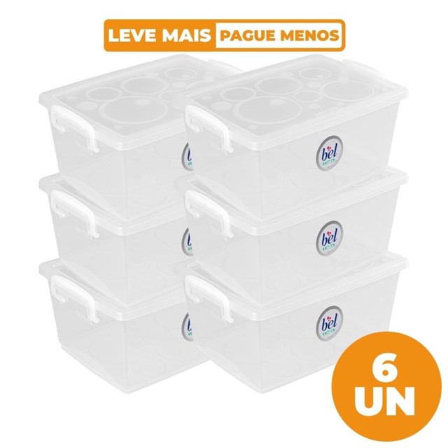 Kit 6 Caixas Organizadoras com Trava e Alça Cristal 1,5L Bel Ordene