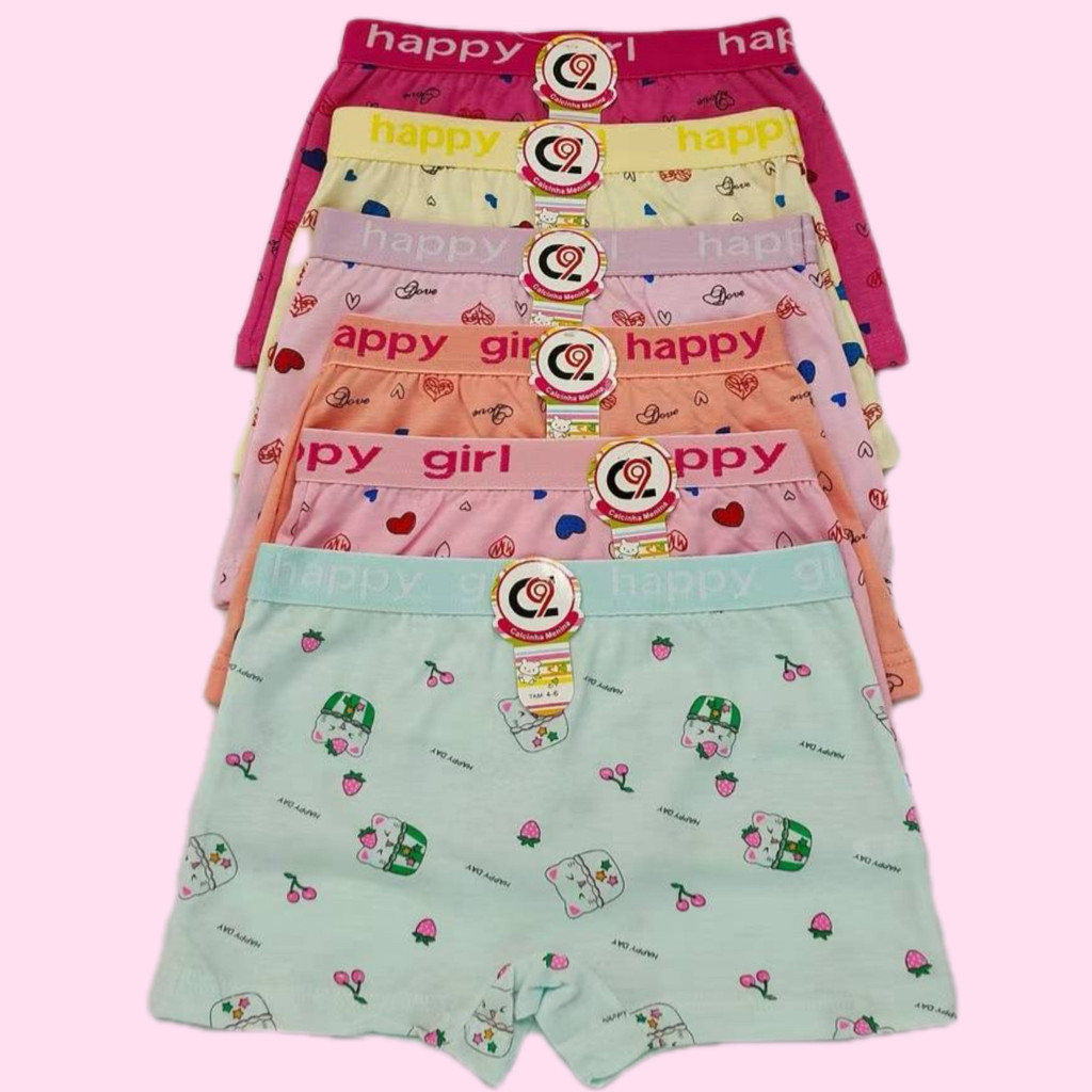 Kit 6 Calcinha Box Shortinho FEMININA MENINA JUVENIL INFANTIL Boxer Calcinhas Confortável Criança Estampas Sortidas