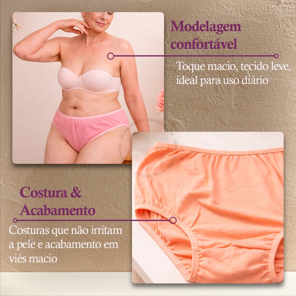 | Kit 6 Calcinha Calçola Feminina Senhora Idosa 100% Algodão Cotton C... este produto | R$ 33,94 | 32% | 4.7/5 | 210 |