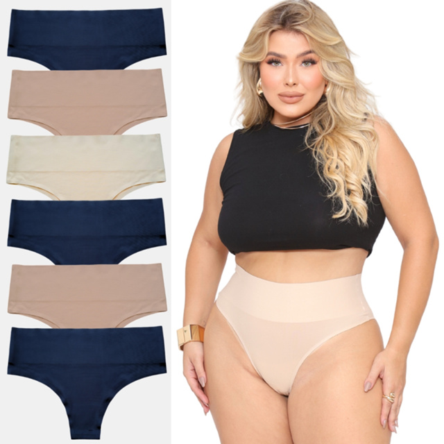 Kit 6 Calcinhas Alta Compressão Sem Costura Corte Laser Modeladora Efeito Lipo