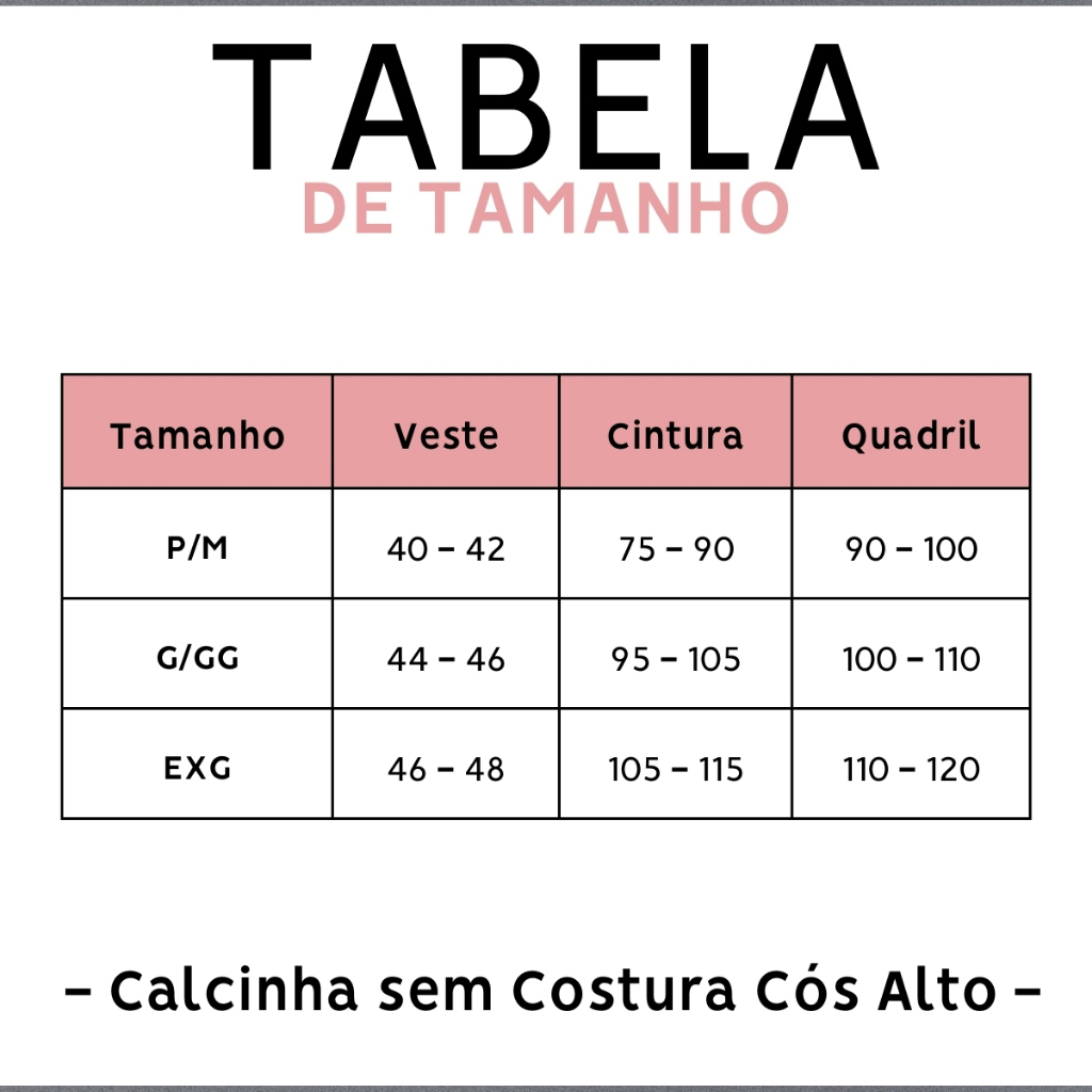 ENVIO IMEDIATO - ENVIAMOS PARA TODO BRASIL Não serviu ou não gostou? Pode devolver de forma 100% gratuita! - TEMOS TODAS AS PEÇAS EM ESTOQUE - 85% poliamida e 15% Elastano - Forro 100% Algodão - Efeito lipo - Modeladora de Cintura - Esconde barriga - Tecido de alta qualidade - Não esgaça - Não laceia - Não desbota - Não marca a roupa - Corte a laser - Sem costura - Conforto para o dia-a-dia O tecido utilizado na confecção das nossas calcinhas, são de alta qualidade, com uma leve costura de reforço na lateral, oque faz ter uma durabilidade muito maior e sem enrolar na hora do uso. Perfeita para uso na academia, corrida, festas ou exercícios onde use uma roupa mais justa, pois o design sem costura e material de alta qualidade fazem com que a lingerie se mantenha invisível e sem marcas na roupa, juntando conforto e versatilidade, é a peça perfeita para o seu guarda-roupa. MANEQUIM: P/M: 40 ao 42 G/GG: 44 ao 46 EXG: 46 ao 48 COMPOSIÇÃO: - 85% poliamida e 15% Elastano