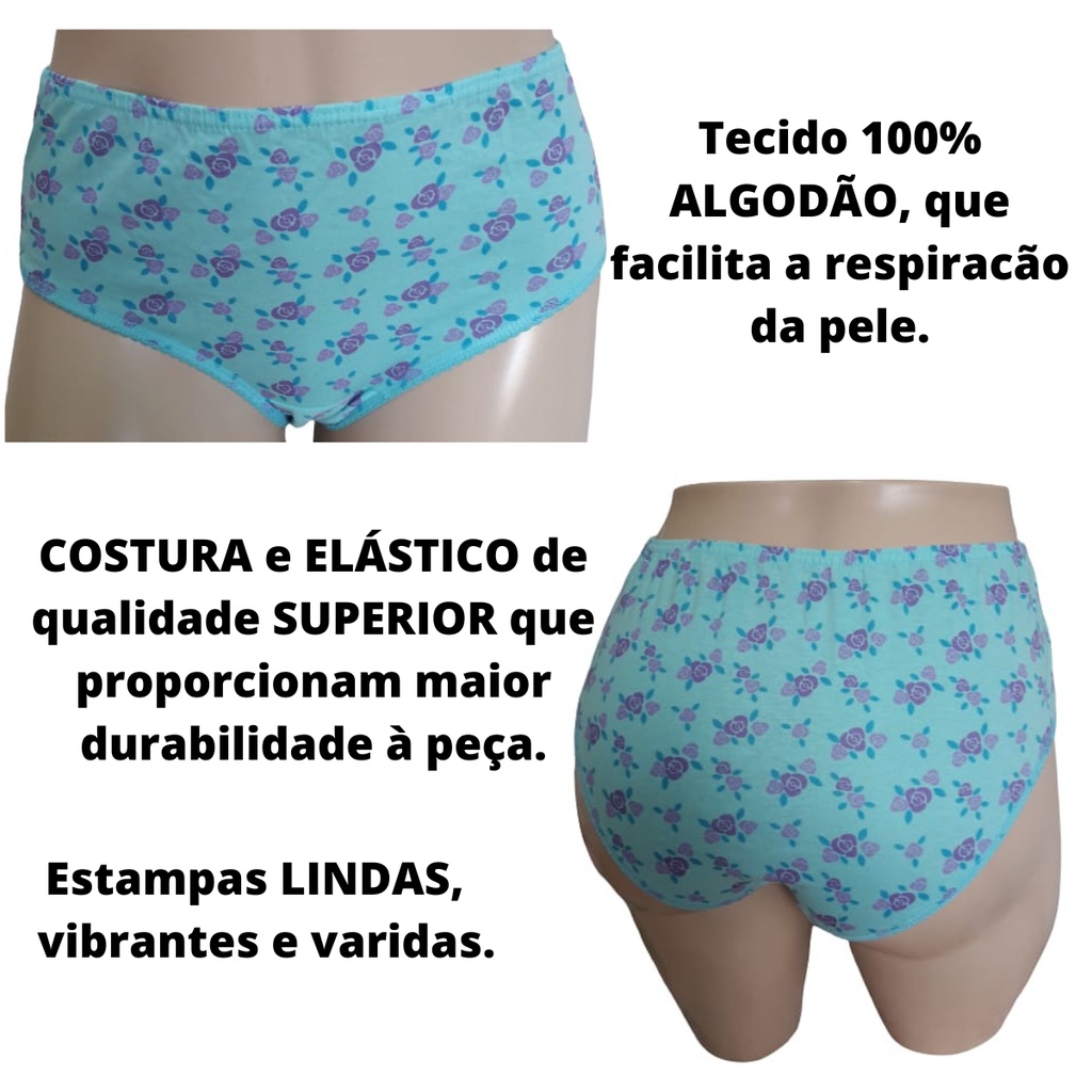 Kit 6 Calçola Calcinha Senhora Gestante Pós Parto 100% Algodão Confortável Estampada
