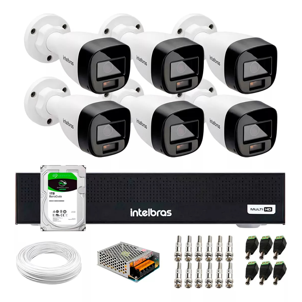 Kit 6 Câmeras Intelbras 2 Megapixels 20m Vhd 1220 Full Color Dvr 8ch Mhdx c/hd 1tb