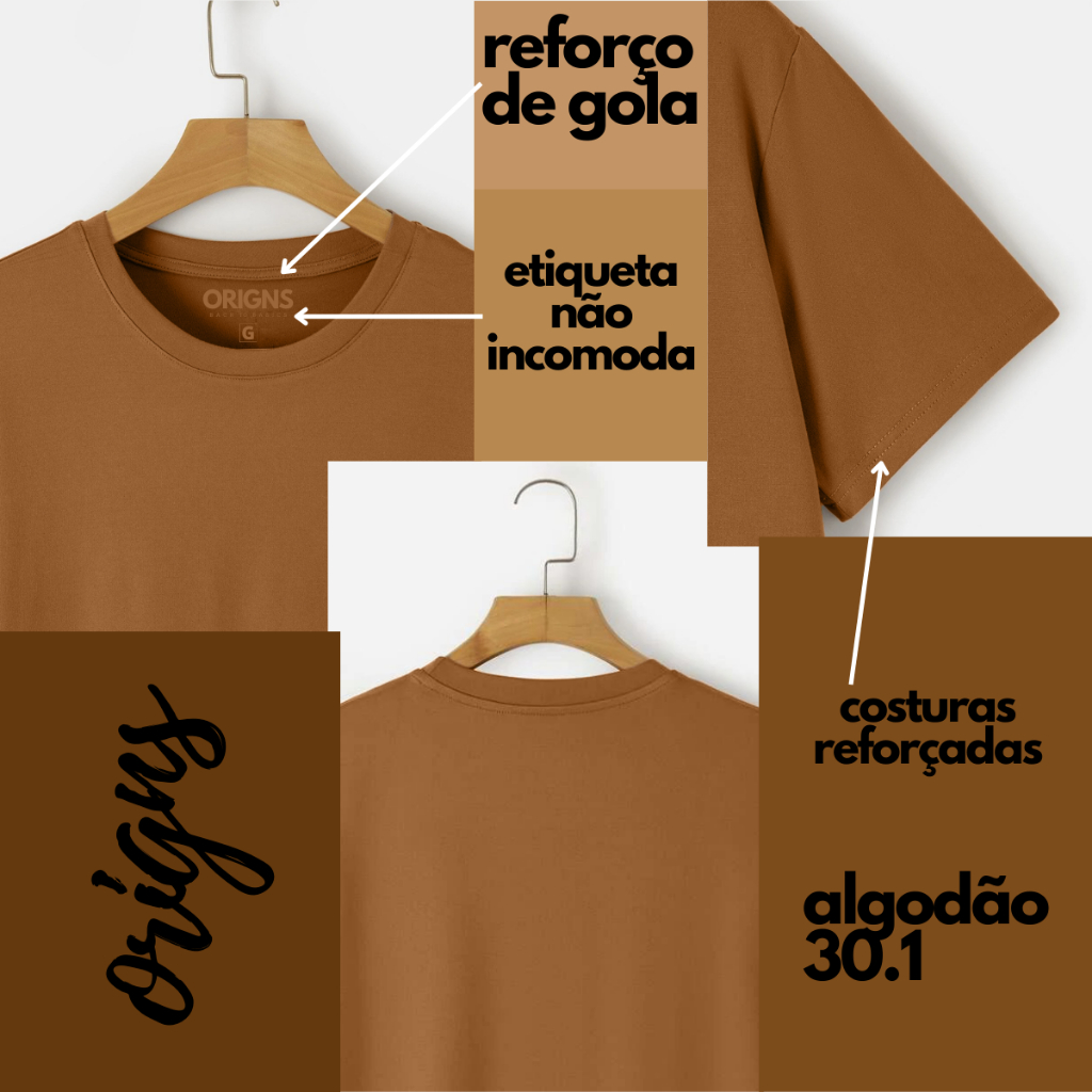 PRODUTO ORIGINAL! ORIGNS. A ORIGNS traz em seu DNA o urbano dia e noite, com peças cheias de atitude e acabamentos únicos. ESTILO e CONFORTO: As peças da ORIGNS são perfeitas para quem quer estar confortável e estiloso em diversas ocasiões do dia a dia, para passear ou praticar exercícios. Além de compor um look mais casual e informal, é possível criar combinações sofisticadas sem perder o conforto. Aposte em peças mais leves e básicas como bermudas e acessórios. Confeccionadas em algodão de qualidade, cada peça conta com etiqueta silk que não incomoda, forma reta/regular, levemente slim, caimento perfeito! Com toque suave e macio, é um modelo diferenciado dos demais concorrentes, oferecendo diversas vantagens. ESPECIFICAÇÕES: Kit 6 Camisetas Masculinas Básicas Algodão Premium ORIGNS Composição: 100% Algodão 30.1 Gola: Redonda C + Reforço do gola/ombro à ombro Manga: Curta Detalhes: Etiqueta Silk (não incomoda) Modelagem: Regular/Reta c/ toque Slim Tecido: Meia Malha CORES: Preta-Branca-Marinho-Cinza-Verde-Caramelo OBS: Na ausência de alguma cor citada acima, poderá ir 1 peça Terracota, Cáqui ou Marrom. ATENÇÃO: *NÃO é possível a ESCOLHA/TROCA de cores, enviamos o kit aleatoriamente nas cores descritas e sem repetições. *Escolha o tamanho desejado, dentre os disponíveis no momento da compra. *Antes de efetivar a compra, verifique a tabela de medidas. *Considere o grau de encolhimento comum no material algodão. *As medidas são referentes a peça fora do corpo, considerando somente a parte frontal, sem contar a elasticidade do material na cintura, para circunferência total multiplique por 2. MEDIDAS DAS PEÇAS: (P) Comprimento: 66cm • Largura: 50cm • Ombros: 40cm • Mangas: 19cm (M) Comprimento: 69cm • Largura: 52cm • Ombros: 42cm • Mangas: 20cm (G) Comprimento: 72cm • Largura: 54cm • Ombros: 43cm • Mangas: 21cm (GG) Comprimento: 74cm • Largura: 55cm • Ombros: 45cm • Mangas: 21cm CUIDADOS: • Lavar com cores similares; • Não deixar de molho;• Não usar alvejante; • Não secar na máquina; • Não passar o ferro sobre a estampa e o aplique; • Para informações detalhadas, siga as instruções contidas na etiqueta do produto. GARANTIA: Caso não ficar satisfeito nos avise em até 7 dias e devolvemos seu dinheiro! (mediante devolução do kit completo sem sinais de uso e com a etiqueta) Aproveite essa promoção! Tá com Dúvida? Nos chame que respondemos na hora! ORIGNS - Back to Basics
