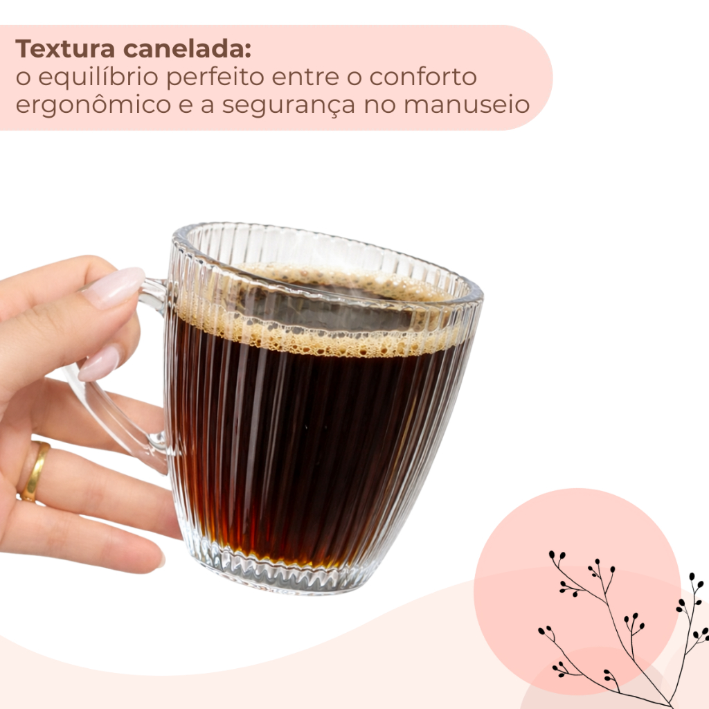 Kit 6 Canecas Café Chá Canelado Sleek 250ml Em Vidro