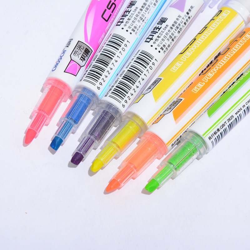 Kit 6 Caneta de Gel Dupla Ponta Fina 0,5mm Marcatores Coloridos Material Escolar Multiuso