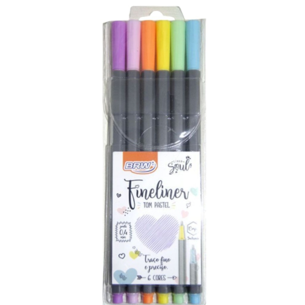 ESTOJO DE CANETAS FINELINER SEXTAVADA 0,4mm NEON SOUL - BRW/ PAPELARIA Pedidos feitos até às 12:00 (MEIO DIA) são despachados no mesmo dia!!! DESCRIÇÃO: •Modelos: Neon, Pastel e Vintage. •Cores Neon: roxo, rosa, laranja, amarelo, verde e azul. •Cores Pastel: roxo, rosa, laranja, amarelo, verde e azul. •Cores Vintage: vermelho, marrom, turquesa, cinza, azul ciano e azul. •Ponta Fina: 0,4mm •Corpo: sextavado. •Quantidade: blister com 6 canetas. As Canetas Hidrográficas tem um modelo super moderno e ergonômico, possuem formato anatômico dando mais conforto e firmeza no uso. Sua ponta fina proporciona a capacidade de fazer traços finos com mais precisão. Personalize suas anotações do dia a dia, é ideal para estudar, organizar e decorar!