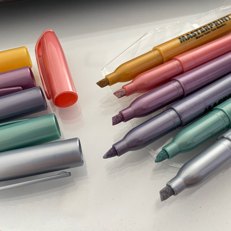 Kit 6 Canetas Marca Texto Metálico com brilho Masterprint - 6 Cores