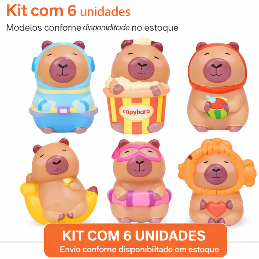 Kit 6 Capivaras Squishy Antiestresse Brinquedo Macio Divertido Capybara Coloridas Colecionáveis