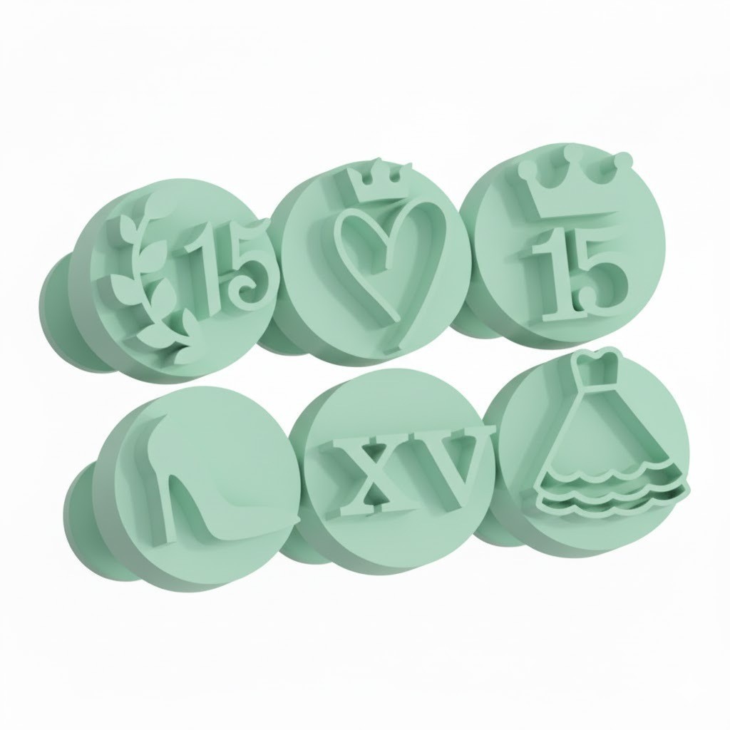 Kit 6 Carimbos Marcadores Brigadeiro e Doces - Aniversário 15 Anos, Debutante