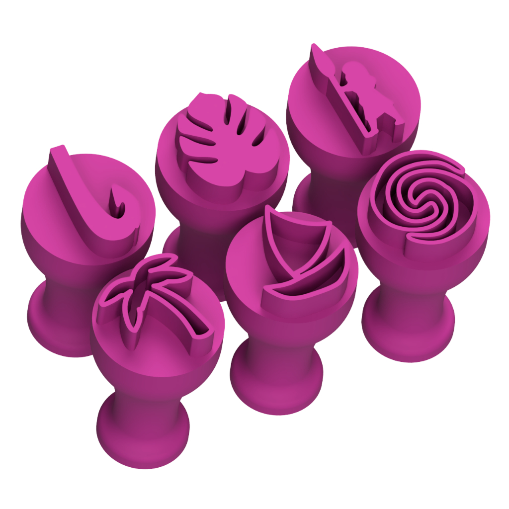 Kit com 6 carimbos exclusivos para personalizar suas criações de forma prática e criativa. Produzidos em PLA biodegradável através de impressão 3D moderna, oferecem detalhes precisos e acabamento de qualidade. Especificações: Desenho: 1,5 cm a 2cm Base: 3,5 cm x 1,5 cm Profundidade: 0,5 cm Material: PLA biodegradável Leve e resistente Cuidados com o produto: -Utilize escova de cerdas macias para higienização; -Lave apenas com água fria; -Para limpar, use detergente neutro; -Não utilizar com alimentos quentes ou mornos, pois o calor pode danificar o produto. Envio e garantia: Postamos o pedido em até 24 horas corridas após a aprovação do pagamento. Compras em fins de semana e feriados são enviadas no próximo dia útil. Enviamos para todo o Brasil com garantia contra qualquer problema. Os produtos seguem em embalagem reforçada para chegar intactos e sem danos
