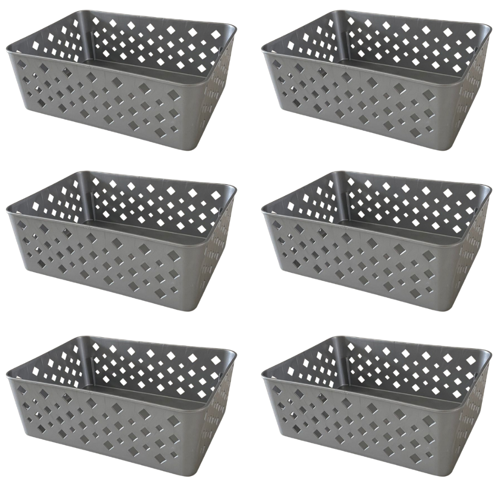 Kit 6 Cestos Organizador Cinza Multiuso Médio Empilhável Gaveta Cozinha Armário Lavanderia 19x14x6,5