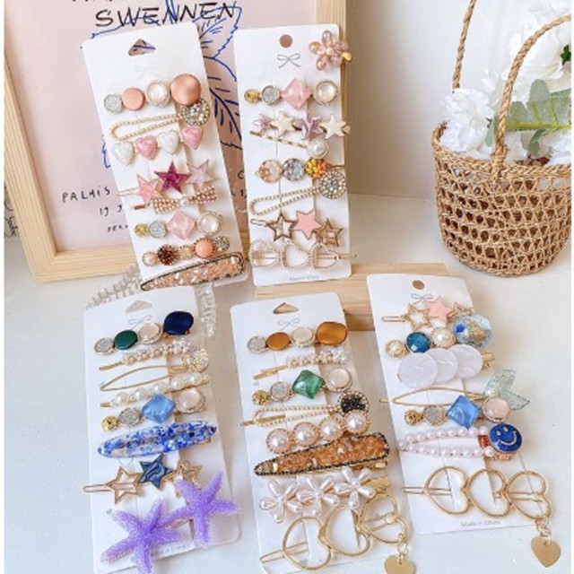 KIT 6 Clipe Simples Liu Haibian Palavra Clipe Ins Vermelho Net Pérola De Cristal De Volta Cabeça Superior Clipe Lado