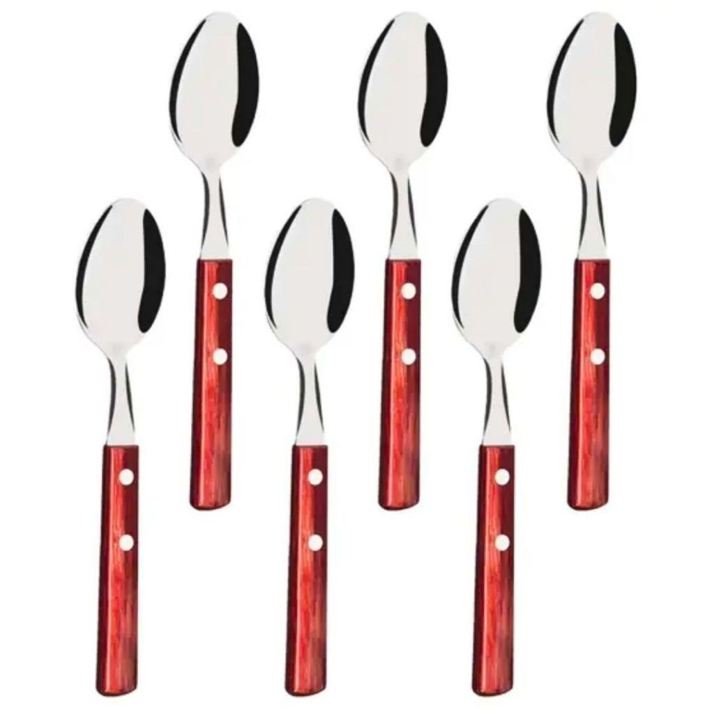Kit 6 Colheres Inox Cabo Amadeirado 20 cm - Talheres Elegantes para Restaurante e Casa