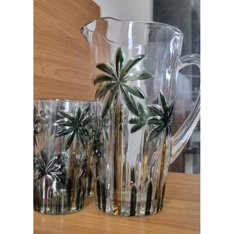 Kit 6 Copos 360ml com Jarra 1,2l De Cristal Palm Tree Coqueiros Wolff