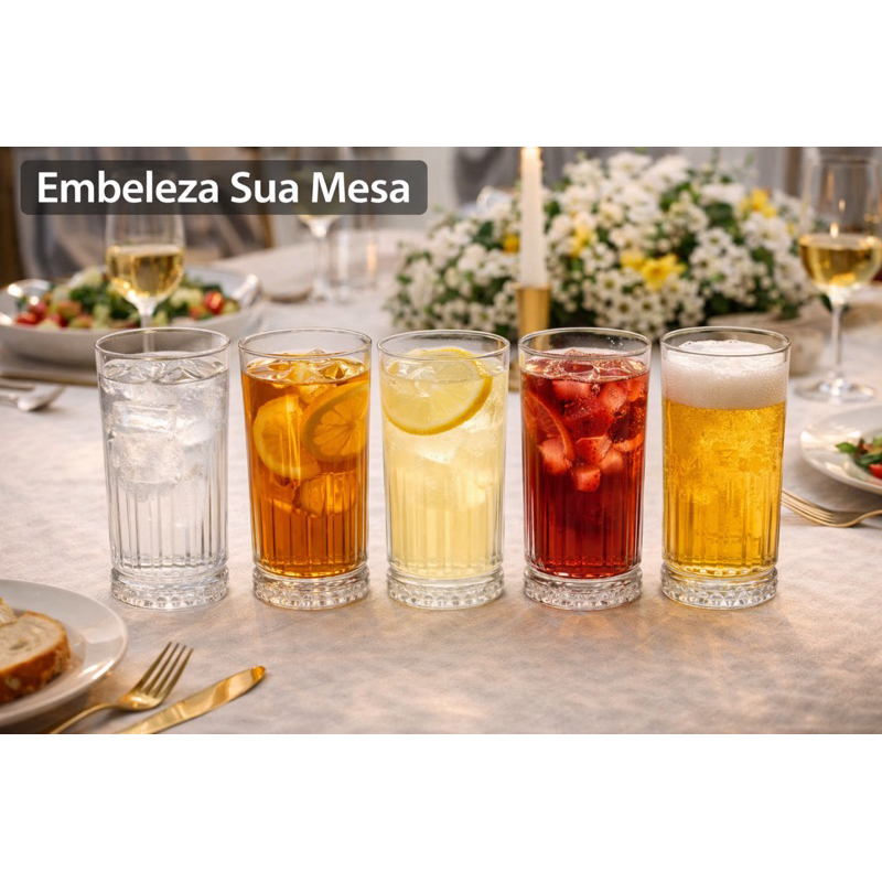 O Conjunto com 6 Copos de Vidro Longo 460ml é ideal para quem busca elegância, versatilidade e qualidade na hora de servir. Com design alongado e moderno, esses copos proporcionam um toque refinado à mesa, sendo perfeitos para água, sucos, refrigerantes, drinks e coquetéis. Produzidos em vidro de alta transparência, unem resistência, brilho e conforto no manuseio — ideais tanto para o dia a dia quanto para ocasiões especiais. CARACTERÍSTICAS: Material: vidro de alta qualidade e resistência Capacidade: 460 ml (cada copo) Design longo e elegante, com bordas arredondadas Base reforçada e estável Transparência e brilho que valorizam a bebida Ideal para bebidas frias em geral BENEFÍCIOS: Adiciona requinte e modernidade à mesa posta Ideal para jantares, eventos e uso diário Alta durabilidade e fácil limpeza Design confortável e ergonômico para segurar Versátil: perfeito para casa, bares e restaurantes Conteúdo da Embalagem: 6 Copos de Vidro Longo 460 ml