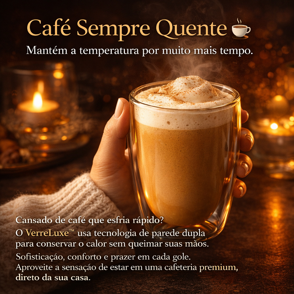 O VerreLuxe™ é o novo padrão de elegância e desempenho em copos térmicos — criado para transformar o simples ato de beber em uma experiência de puro prazer. ☕ A Revolução do Café em Casa Chega de cafés frios, copos frágeis e queimaduras nas mãos. Com sua tecnologia de parede dupla, o VerreLuxe™ mantém a temperatura ideal por muito mais tempo, seja quente ou gelada. Seu design europeu minimalista combina resistência e beleza, encantando até os mais exigentes amantes de café. Perfeito para quem valoriza conforto, estilo e momentos de prazer real — o VerreLuxe™ traz o charme das cafeterias premium para dentro da sua casa. 💎 Mais do que um Copo — Um Símbolo de Bom Gosto O VerreLuxe™ é feito com vidro borossilicato de alta durabilidade, livre de BPA e projetado para durar anos sem perder o brilho. Sua estética impecável faz dele um ícone de sofisticação: o tipo de produto que faz visitas perguntarem “onde você comprou isso?”. O prazer visual e o toque suave do vidro elevam cada gole à categoria de luxo. Cada detalhe foi criado para pessoas que querem mais do que funcionalidade — querem sentir-se especiais. Seu café, seu momento, seu estilo — VerreLuxe™. ⚡ Por que escolher o VerreLuxe™? Porque ele entrega o que todos prometem e poucos cumprem: prazer real, conforto absoluto e durabilidade premium. 💫 Sensações que o VerreLuxe™ desperta O prazer irresistível de saborear algo feito com excelência. A segurança de ter investido em qualidade verdadeira. O orgulho de exibir algo lindo, exclusivo e desejado. A satisfação de transformar o comum em sofisticado. O desejo de mostrar seu bom gosto aos outros. A tranquilidade de nunca mais se preocupar com copos frágeis. A leveza de ter luxo, sem esforço. 📏 Medidas: 350ml cada copo 🧱 Material: Vidro borossilicato com parede dupla, livre de BPA 🚨 ATENÇÃO: Apenas 47 kits VerreLuxe™ disponíveis com o desconto atual. Após o fim do lote, o valor volta ao preço original Garanta o seu agora e transforme cada gole em luxo! 👉 Compre hoje e sinta o prazer do café perfeito com VerreLuxe™.