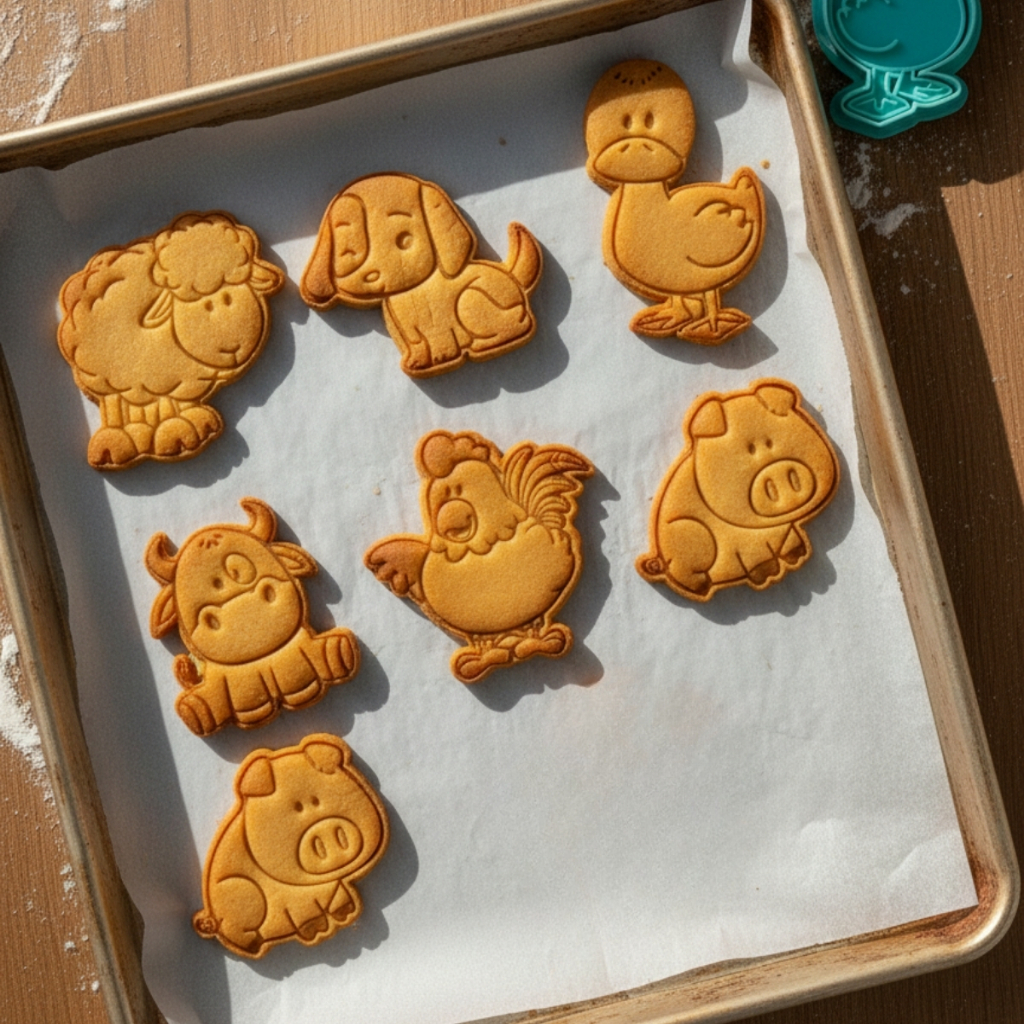 Kit 6 Cortador Marcador Biscoitos Tema Fazendinha Pasta Americana Animais Molde Massinha Bolacha