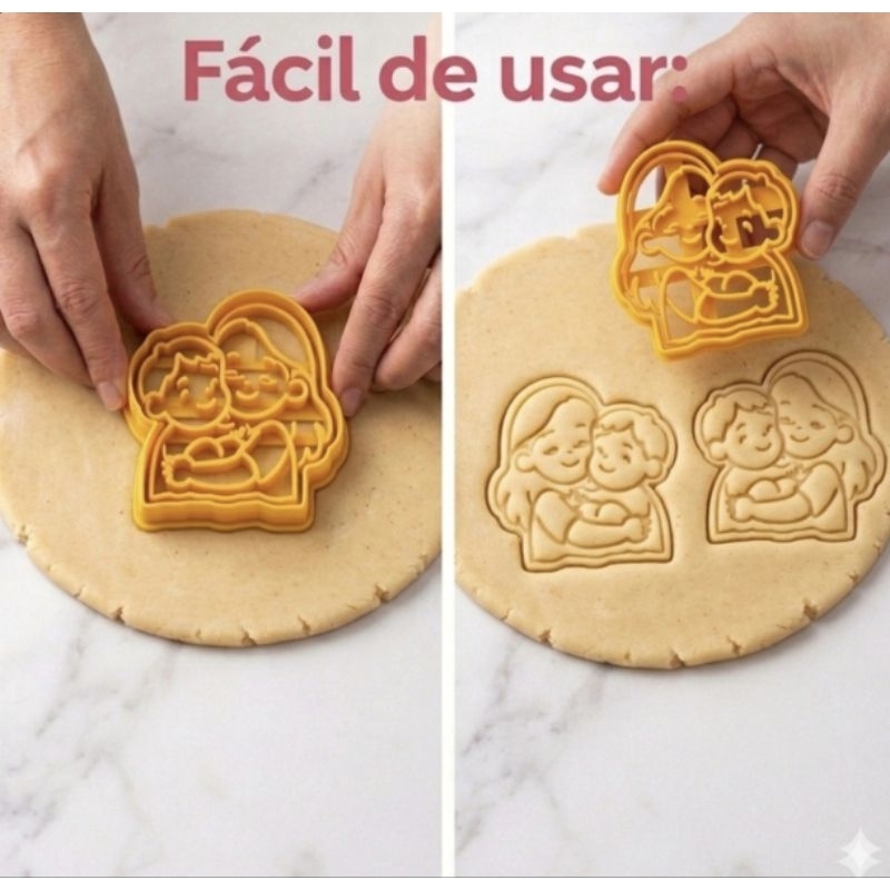 👩🏻🍼👸🏻 Kit Cortador de Biscoito Dia das Mães com Puxadores - 6 Peças 👩🏻🍼👸🏻 Encante seus clientes e valorize suas produções com este kit exclusivo! Ideal para confeitaria artesanal, lembrancinhas e festas infantis, o Kit oferece praticidade, durabilidade e um acabamento impecável. ✔️ Conteúdo do kit: • 6 cortadores temáticos ✔️ Tamanho: • Aproximadamente 8 cm cada (pode variar conforme o modelo) ✔️ Material: • Seguro para contato com alimentos • Material resistente e durável ✔️ Diferenciais: • Puxador integrado para melhor manuseio • Corte limpo e preciso • Ideal para biscoitos decorados, massas e pasta americana • Uso profissional ou doméstico 🧼 Cuidados com o produto: ❌ Não lavar com água quente ❌ Não colocar na lava-louças ✔️ Lavar com água fria ou em temperatura ambiente e sabão neutro ✔️ Manter longe de calor excessivo ✨ Produto perfeito para quem busca qualidade, praticidade e mais vendas na confeitaria!