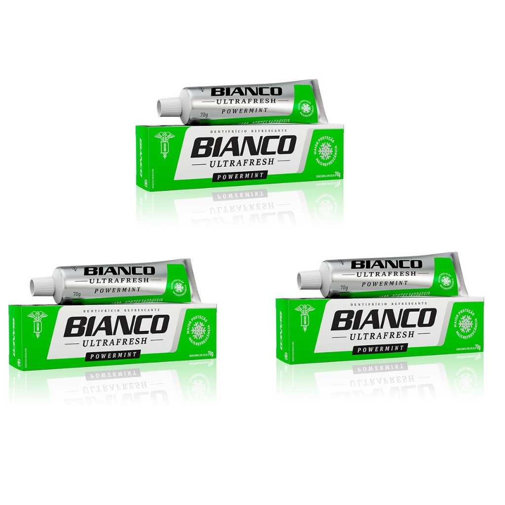 Kit 6 Creme Dental Adulto Powermint Sem Flúor Bianco Com Cálcio 70g Combate as impurezas dos dentes e mucosas, manchas superficiais e placas bacterianas com facilidade. Inibe o crescimento de bactérias e impede a formação de cárie. O Creme Dental Adulto Powermint Sem Flúor Bianco Com Cálcio 70g é uma excelente opção para quem busca uma alternativa sem flúor para a sua higiene bucal diária. Com uma fórmula especialmente desenvolvida para fornecer uma limpeza eficaz, este creme dental é enriquecido com cálcio, promovendo a saúde dos dentes ao mesmo tempo em que fortalece o esmalte. Sua poderosa ação powermint oferece uma sensação revigorante de frescor, deixando a boca limpa e refrescante após cada escovação. Ideal para quem prefere evitar o flúor em sua rotina de cuidados orais, o Creme Dental Adulto Powermint Sem Flúor Bianco Com Cálcio 70g proporciona uma experiência de limpeza completa e uma sensação de frescor duradoura. Sua embalagem prática de 70g torna-o conveniente para uso diário, garantindo uma higiene bucal eficaz e um hálito fresco ao longo do dia. Escolha este creme dental para uma abordagem sem flúor para a sua rotina de cuidados bucais, sem comprometer a qualidade ou a eficácia.