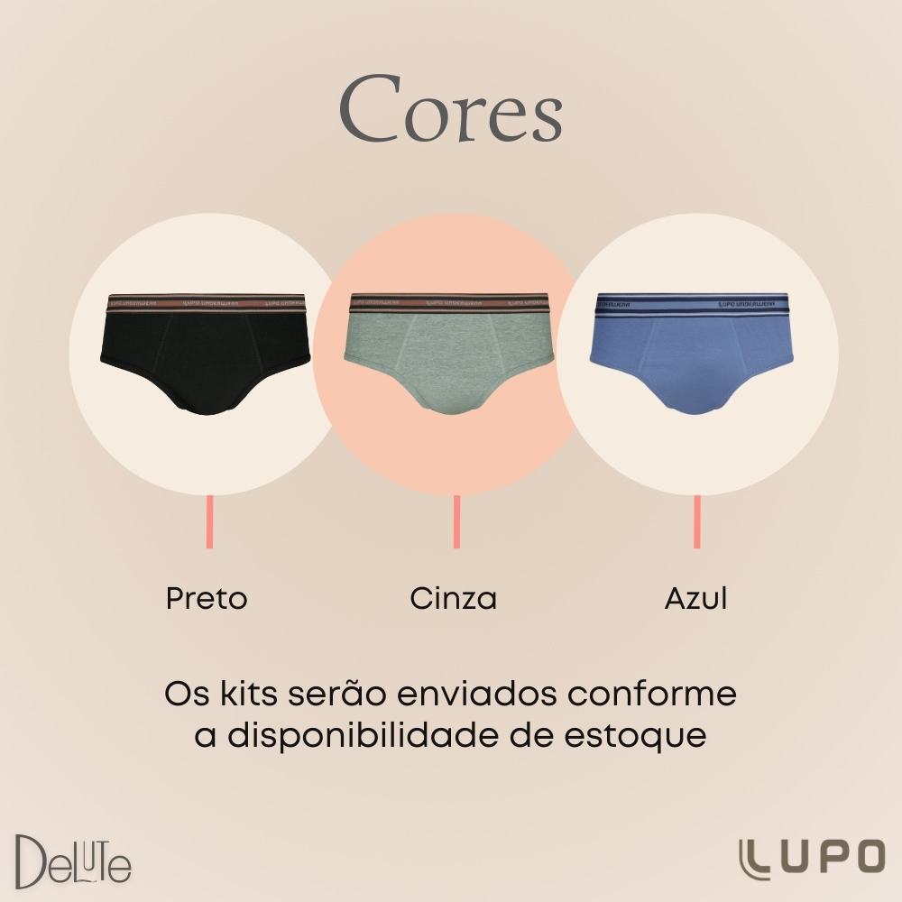 Kit 6 Cuecas Lupo Slip Algodao Modelo Tradicional Com Cos Elastico Modelo Anatomico Tam. P ao GG