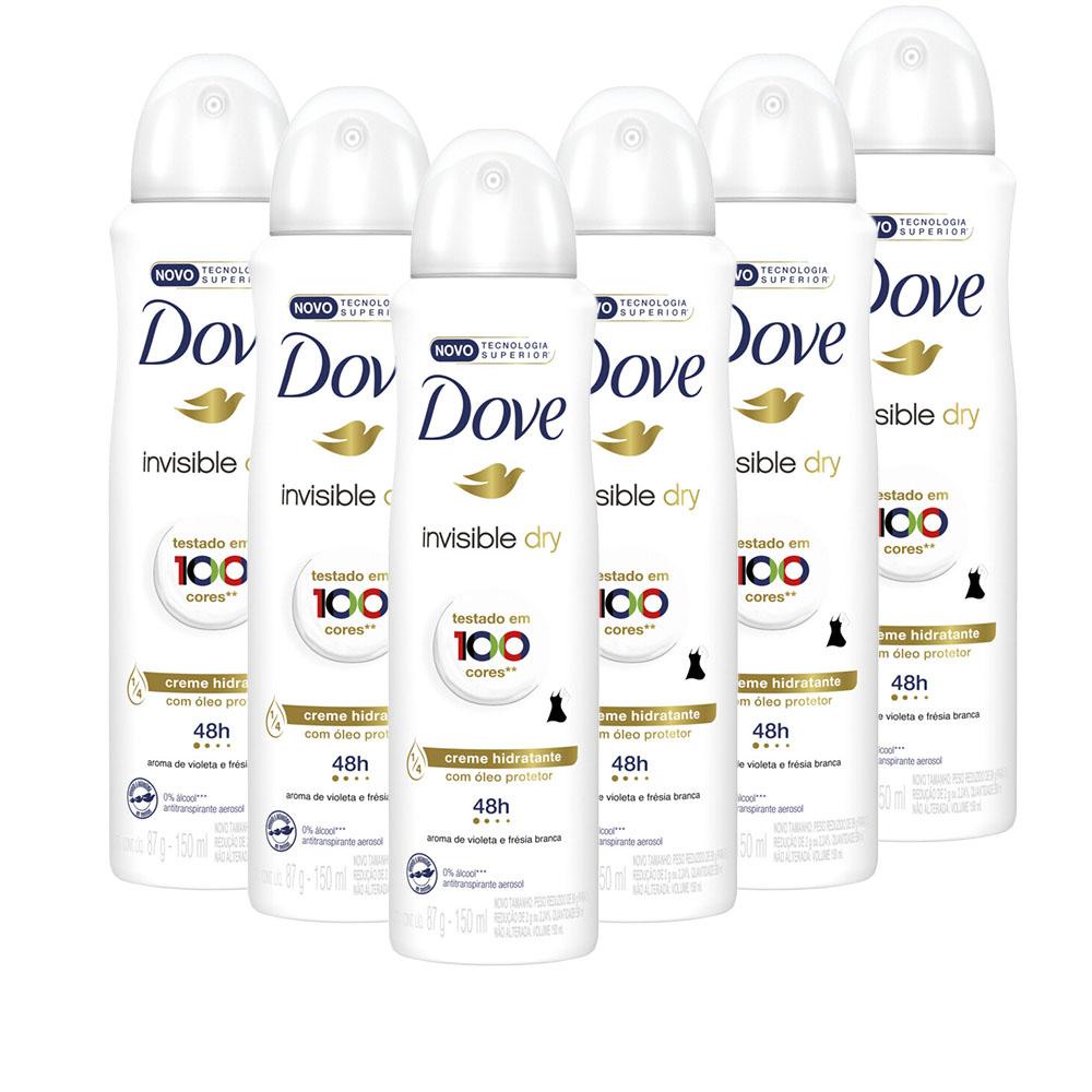 Kit 6 Desodorantes Dove Antitranspirante Aerossol Invisible Dry 150ml